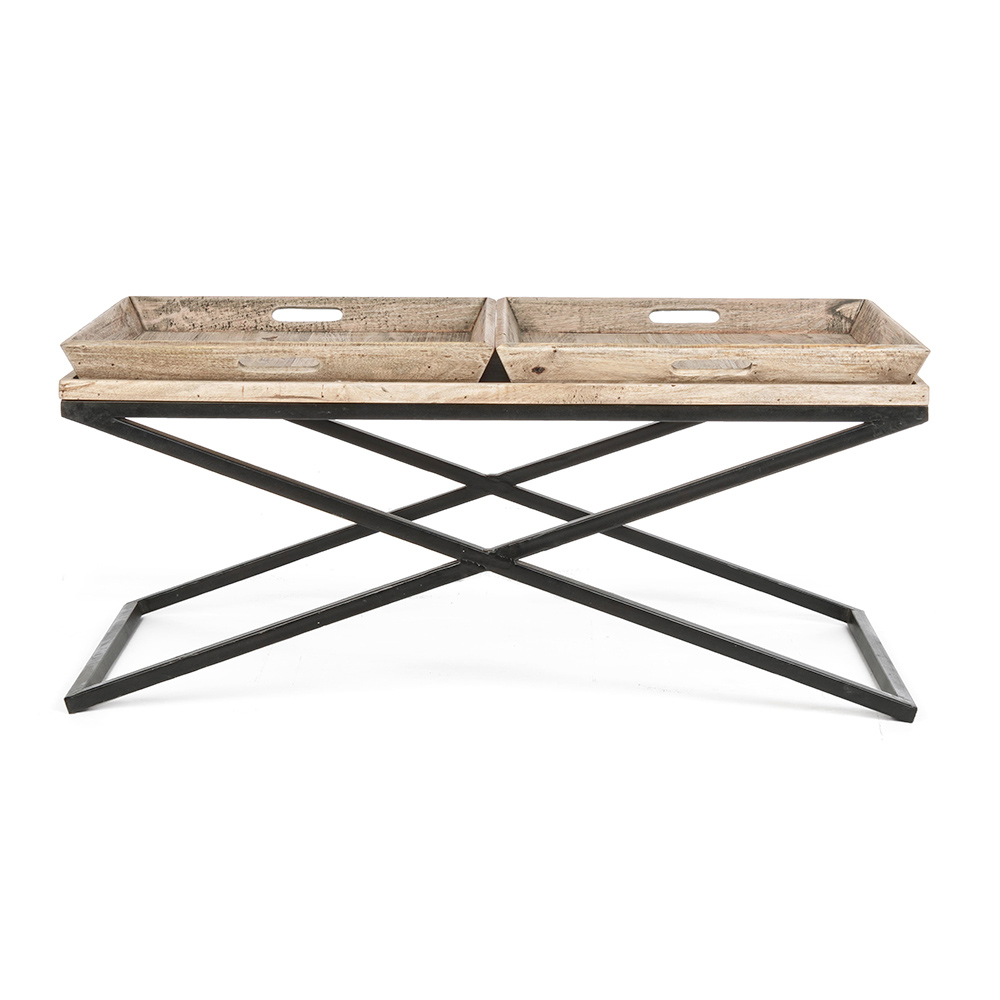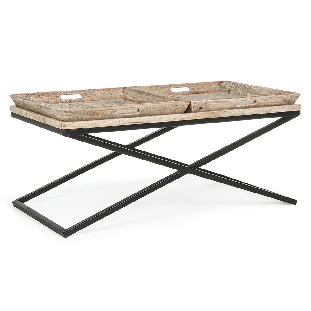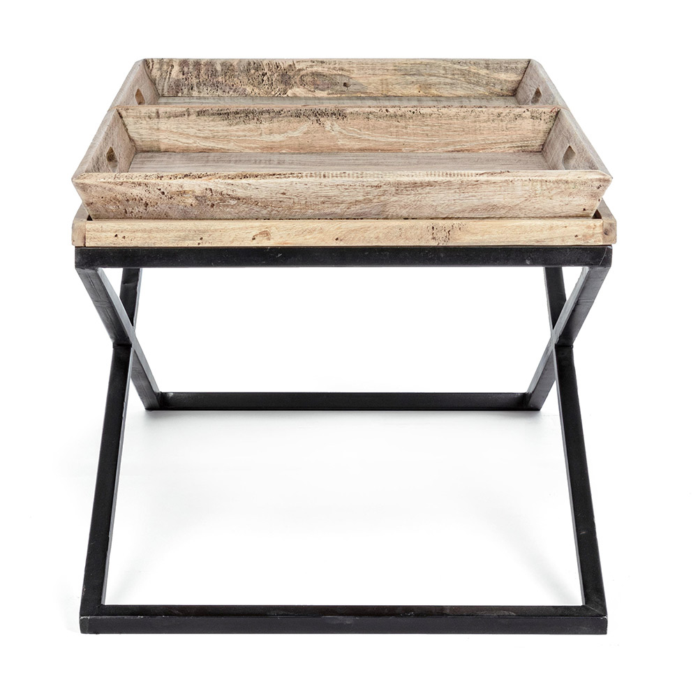 Masuta de cafea din Otel cu Tava in Lemn de Mango Design - Cesira