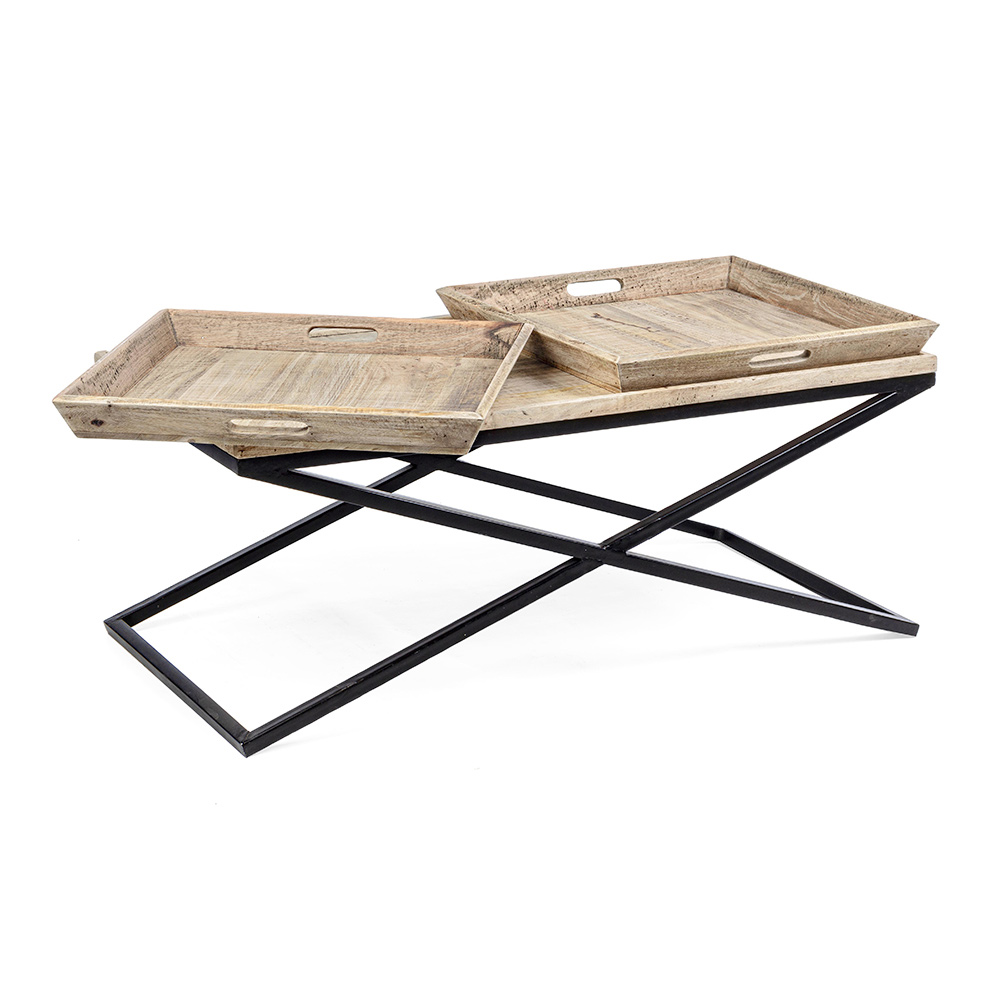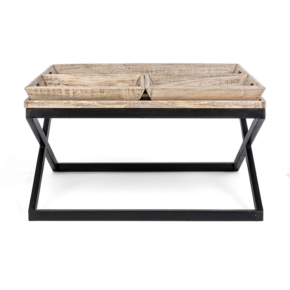 Masuta de cafea din otel si lemn de mango cu tava, 3 dimensiuni.