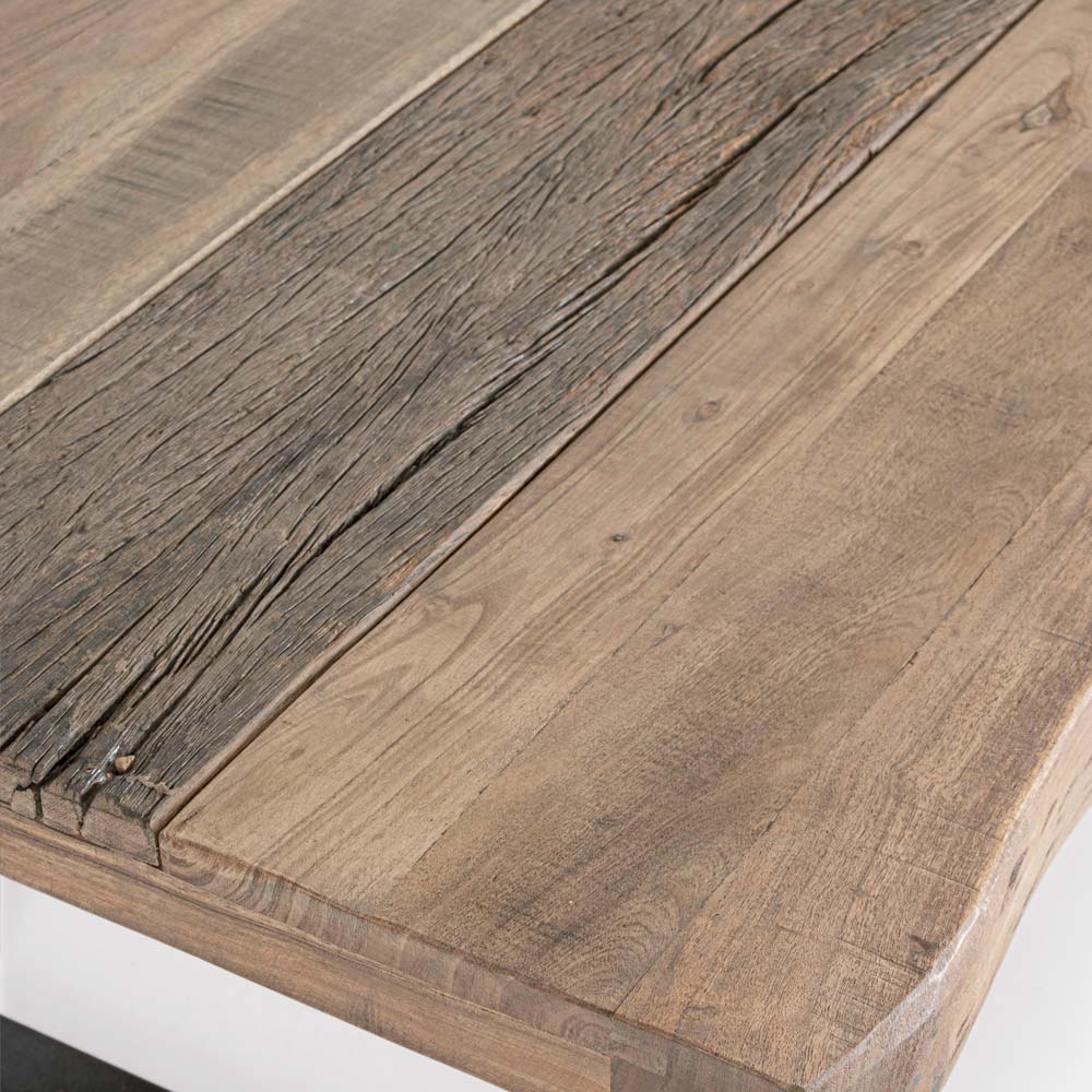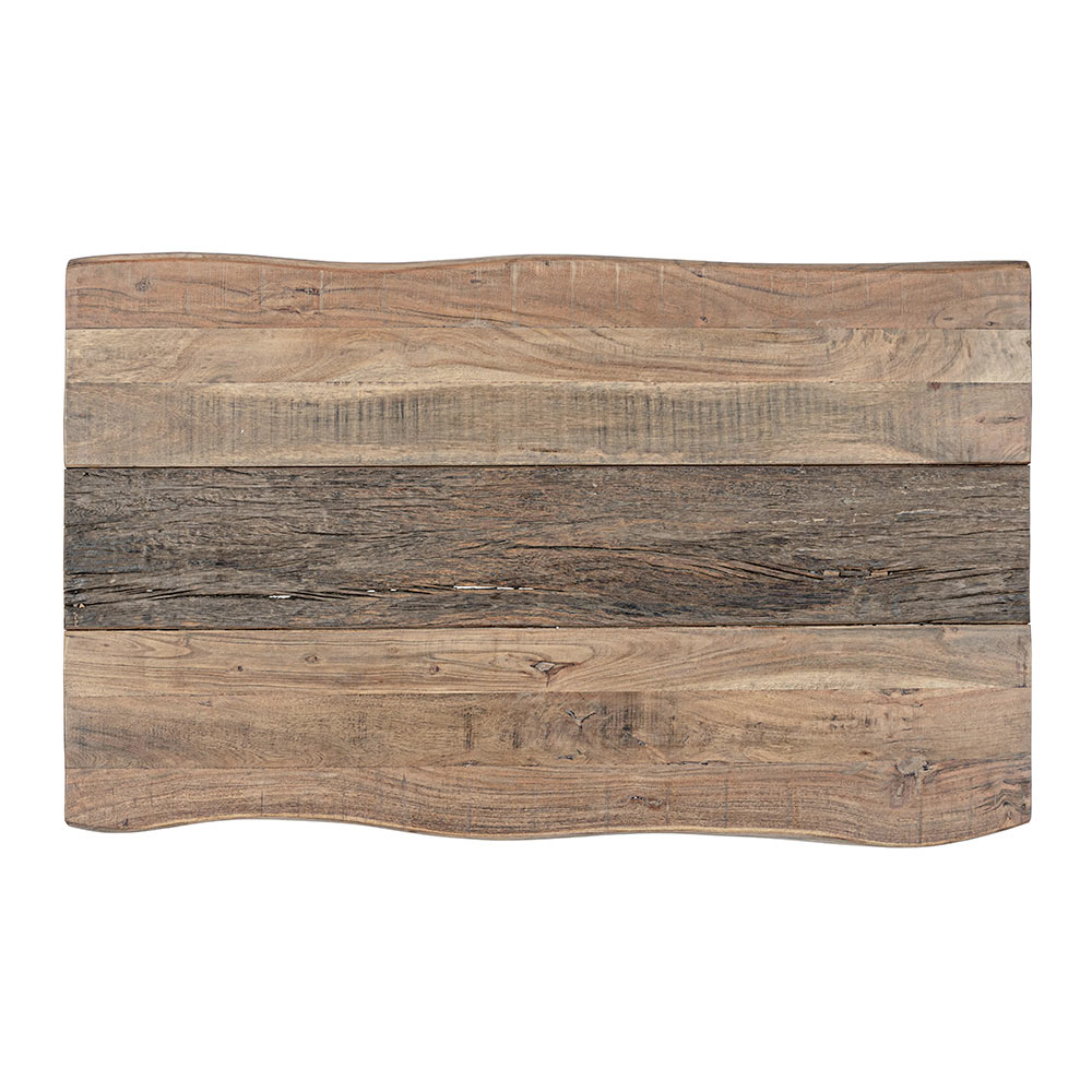 Această masă laterală de sufragerie este realizată cu picioare din oțel acoperite cu pulbere epoxidice asamblate și blat din lemn de salcâm lucrat manual (secțiuni originale ale portbagajului).
