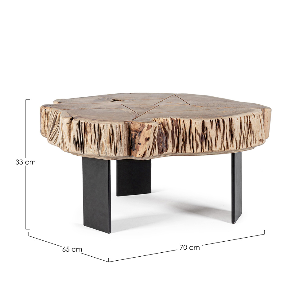Masuta joasa pentru living din otel si trunchi din lemn natural de salcam.