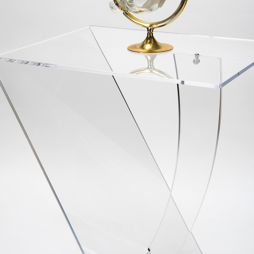 Această măsuță de cafea este realizată în întregime din plexiglas transparent, o alegere care îi sporește versatilitatea și rezistența. Cu raftul său dublu, oferă spațiu suplimentar pentru cărțile, paharele sau orice obiect pe care doriți să-l țineți la îndemână, păstrând întotdeauna un aspect ordonat și șic.