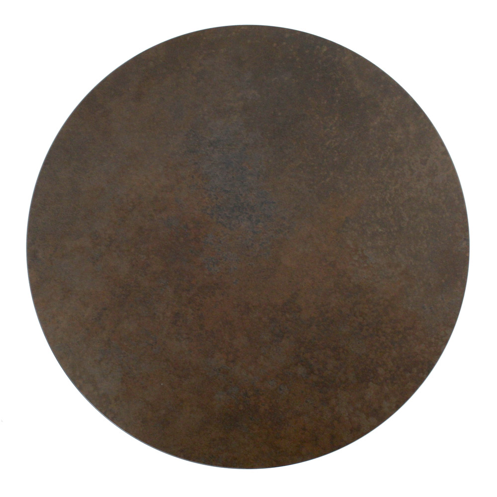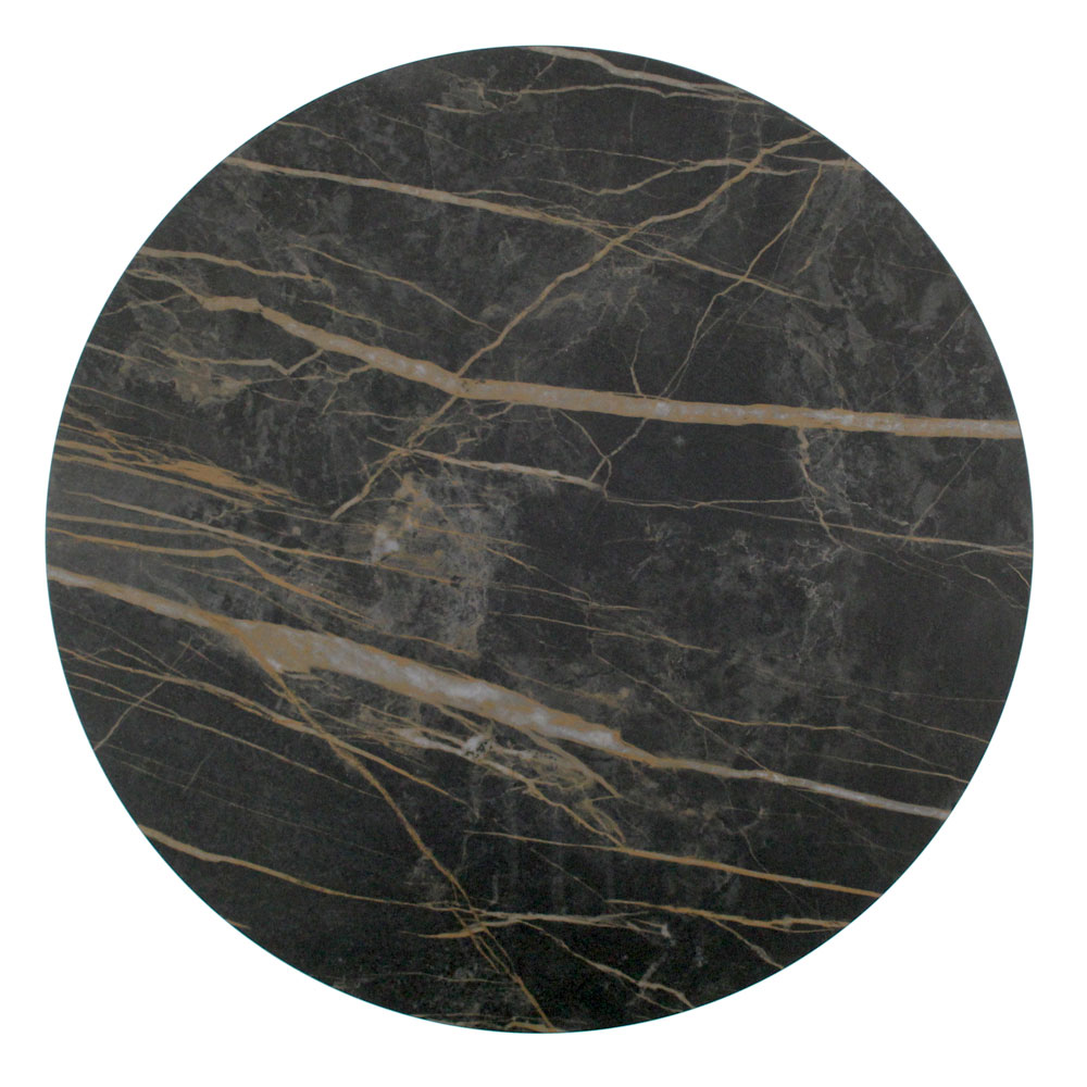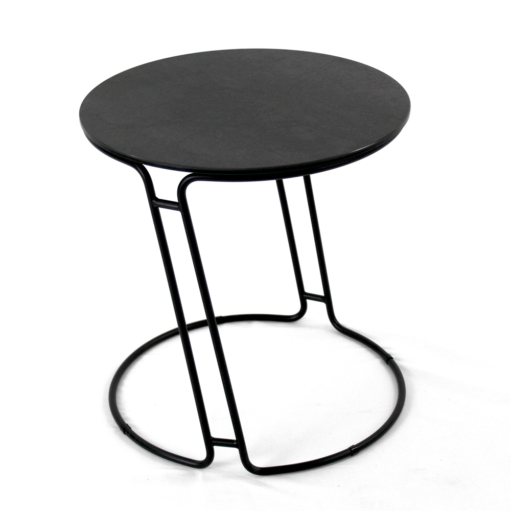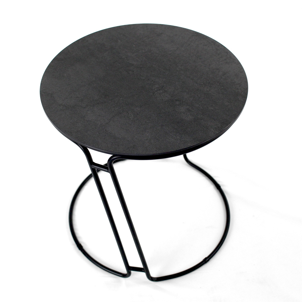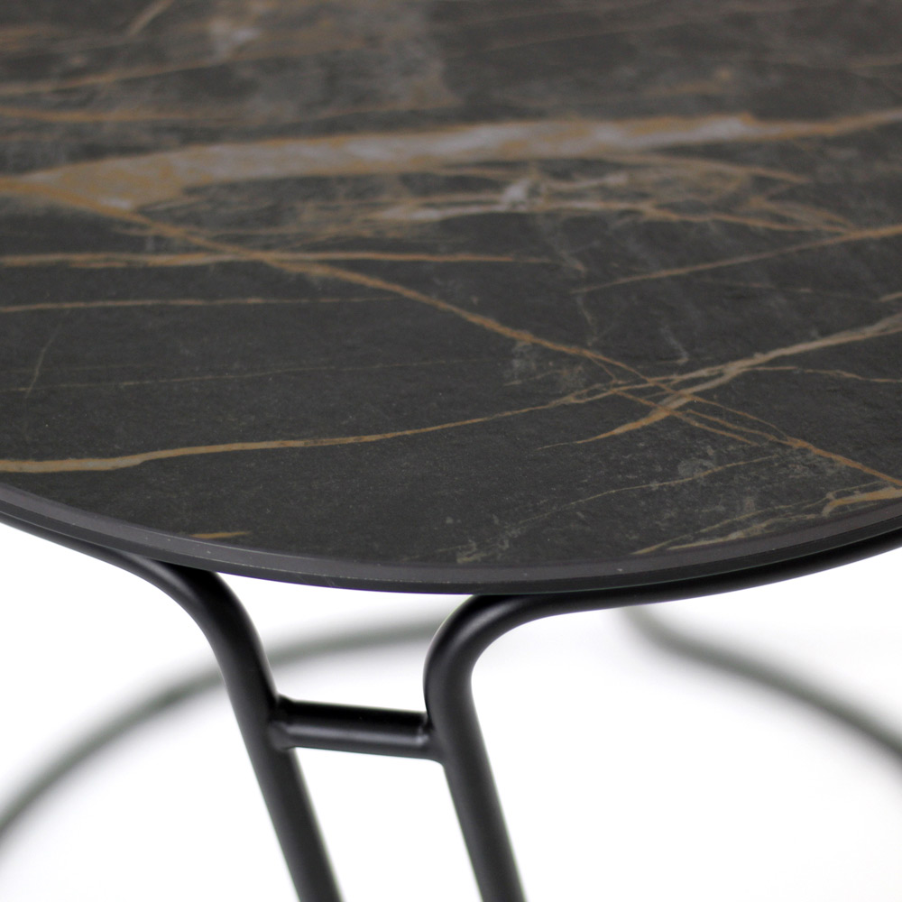 Masuta de cafea rotunda cu baza din otel vopsit si blat din gresie portelanata.