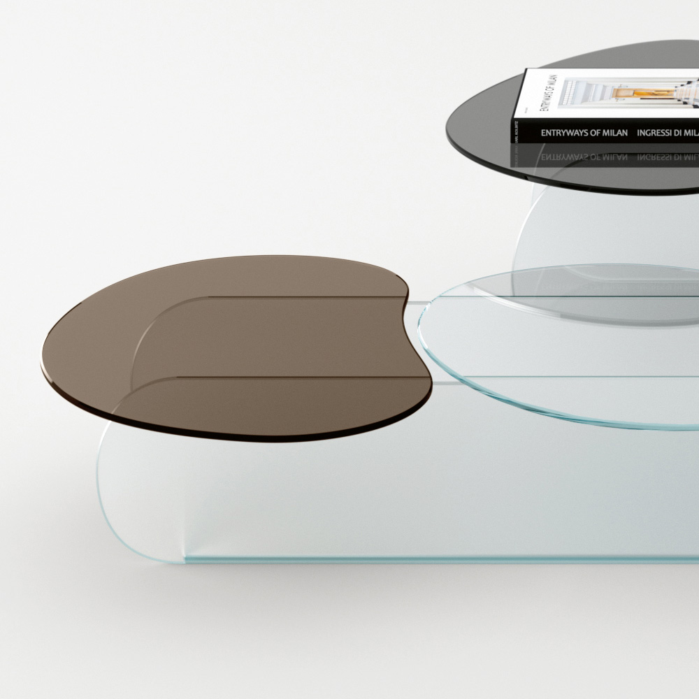 Compoziția inovatoare a suprafețelor transparente și colorate nu numai că mărește percepția asupra spațiului, dar oferă și caracterul practic al utilizării zilnice, ideală pentru cei care caută o piesă de design care să fie atât de centru de conversație, cât și de utilitate. Elegantă și multifuncțională, această masă este o alegere distinctivă pentru cei care apreciază designul care vorbește limbajul modernității și funcționalității .