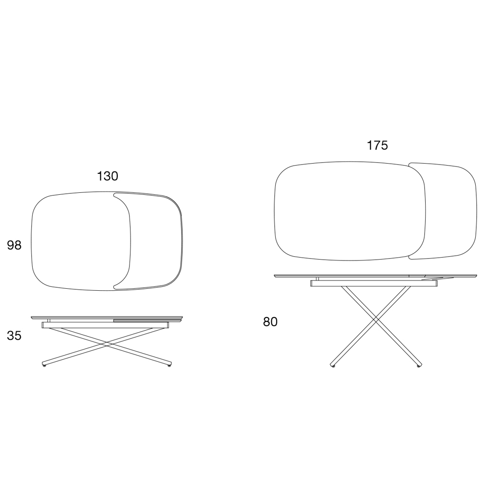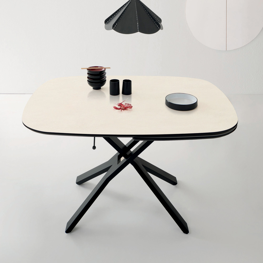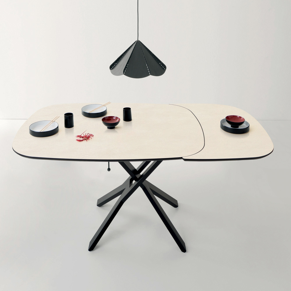 Masuta de cafea transformabila cu baza metalica si blat din ceramica, fabricata in Italia.
