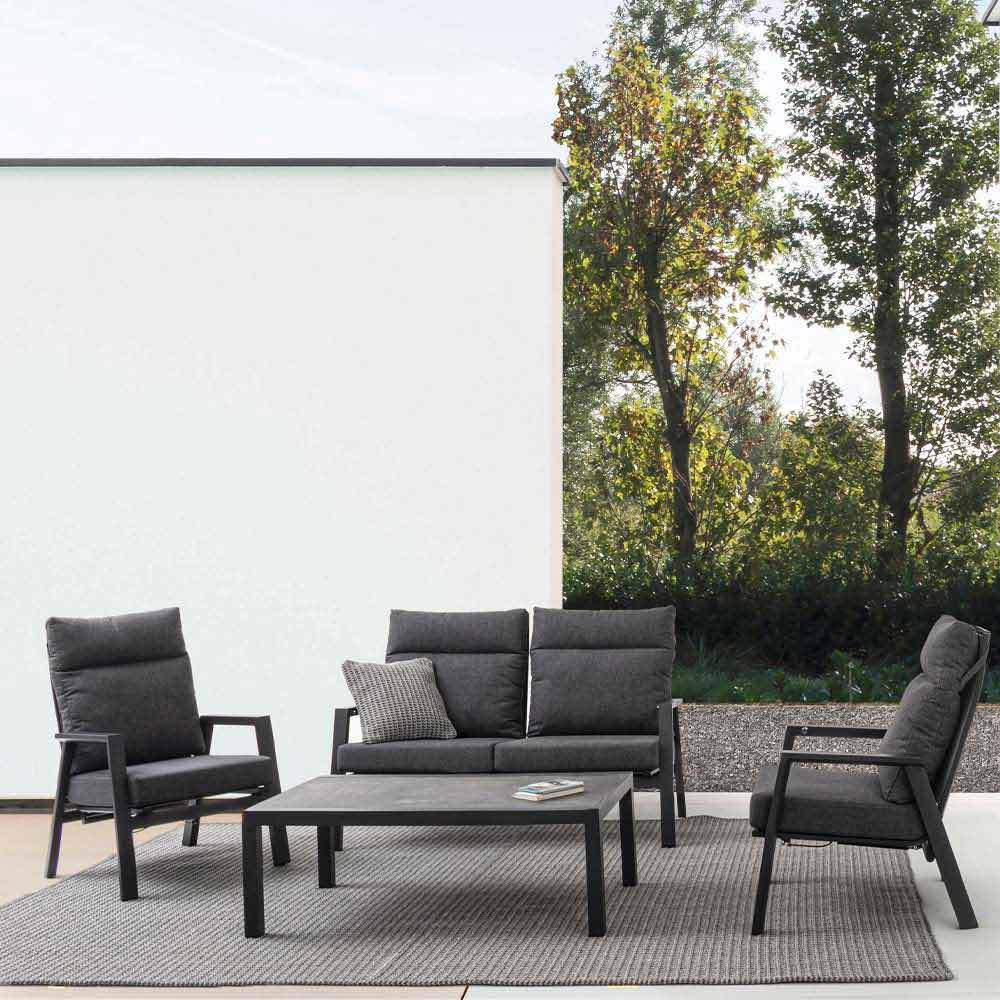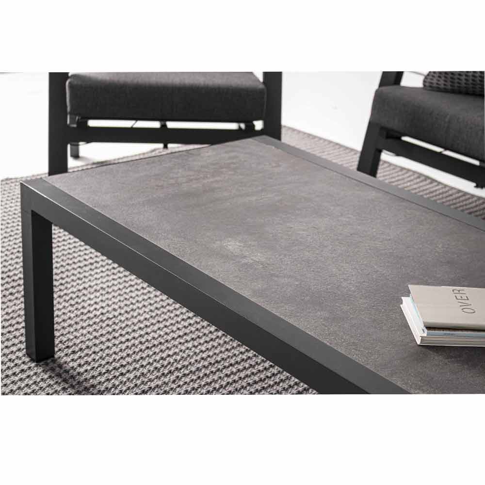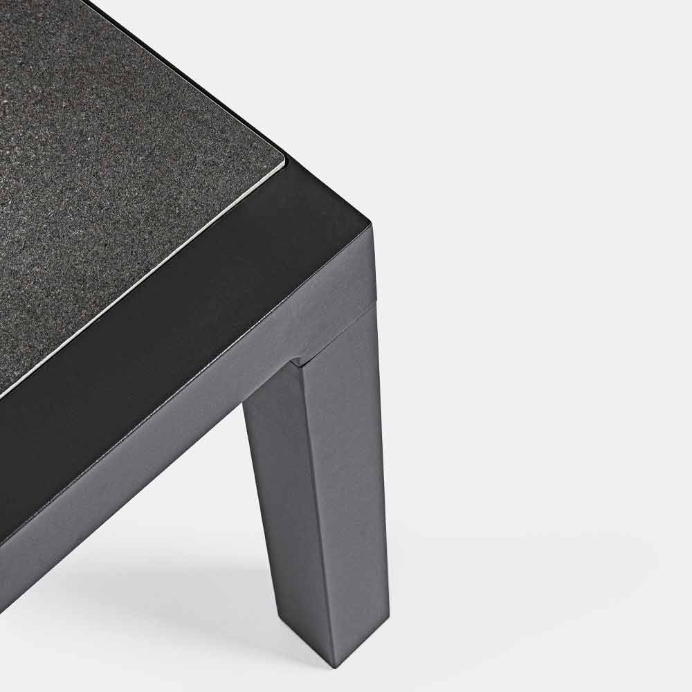 Măsuță dreptunghiulară de exterior din aluminiu și ceramică.