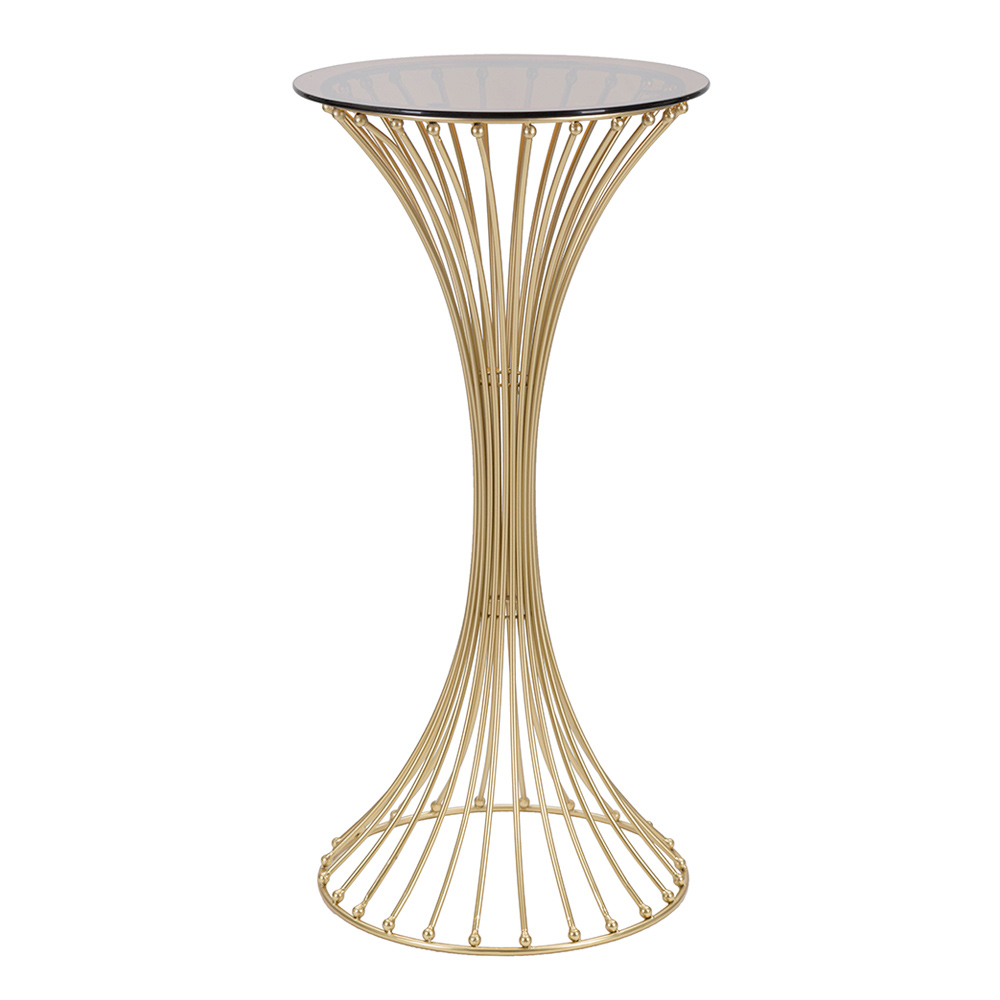 Această măsuță de cafea înaltă este un exemplu distinct de eleganță și design contemporan . Baza aurie se ridică într-un încâlc elegant de linii care amintesc de ramurile subțiri ale unei plante, susținând un blat circular de sticlă. Combinația de sticlă și fier auriu nu numai că sporește frumusețea vizuală , ci vorbește și despre calitatea materialelor, asigurând durabilitate și stabilitate .