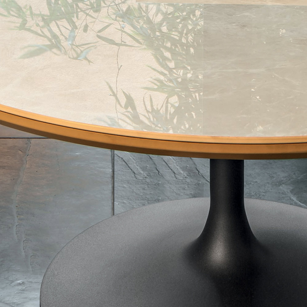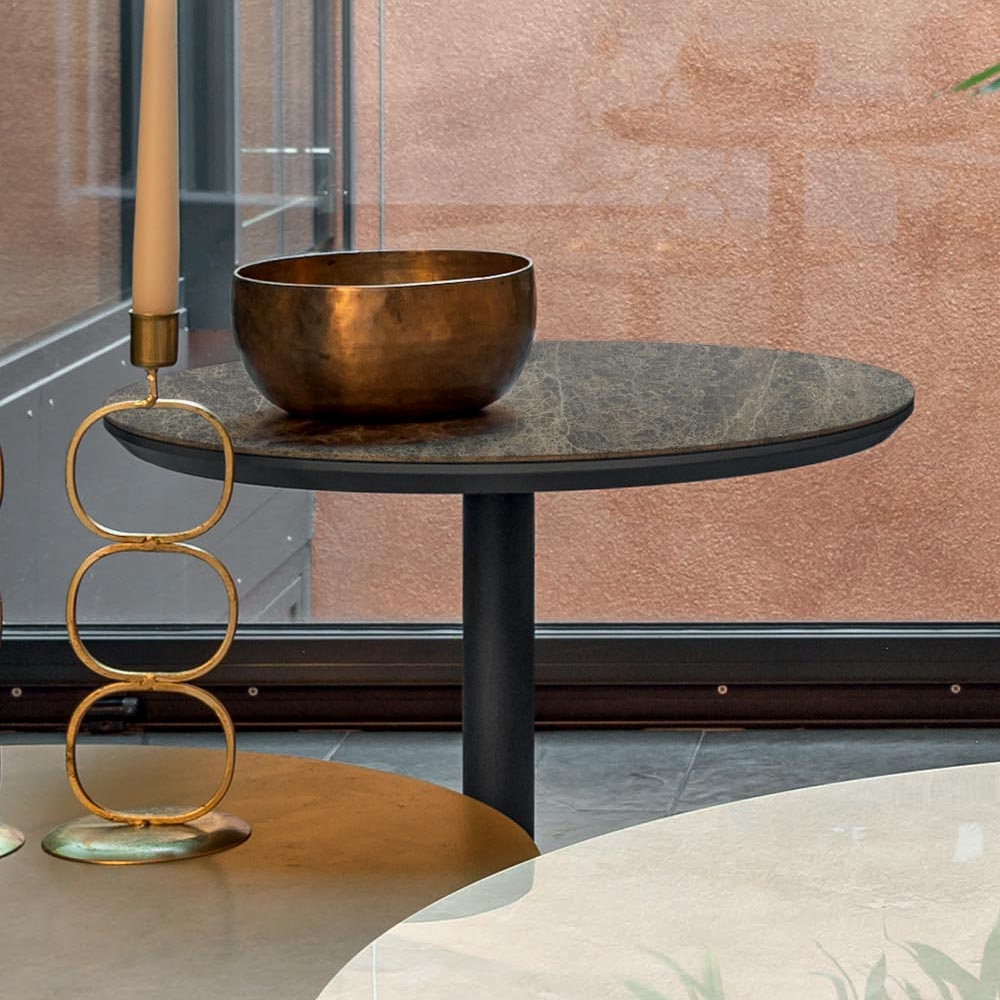 Masuta de cafea rotunda din metal si blat ceramica in diverse dimensiuni si finisaje fabricate in Italia.