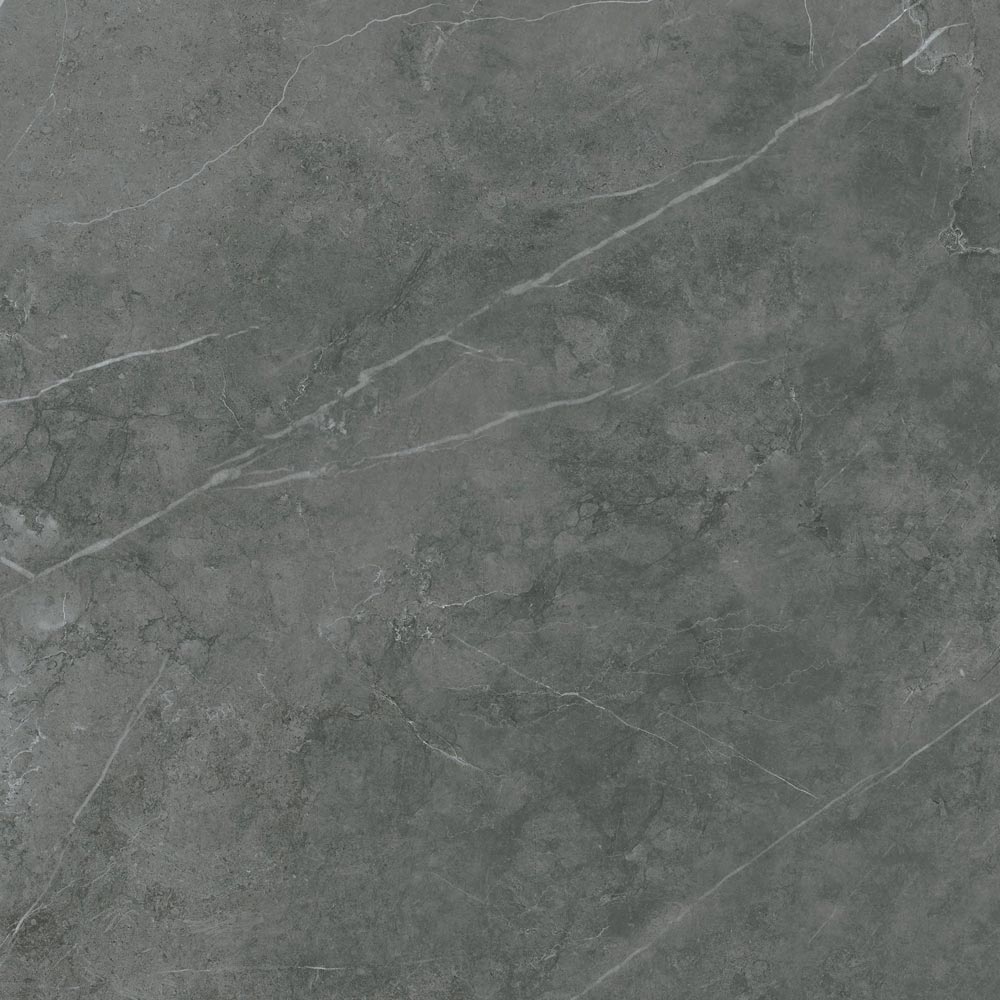 Această măsuță rotundă are un cadru metalic vopsit cu pulbere de grafit în relief și un blat din ceramică lucioasă sau mată .