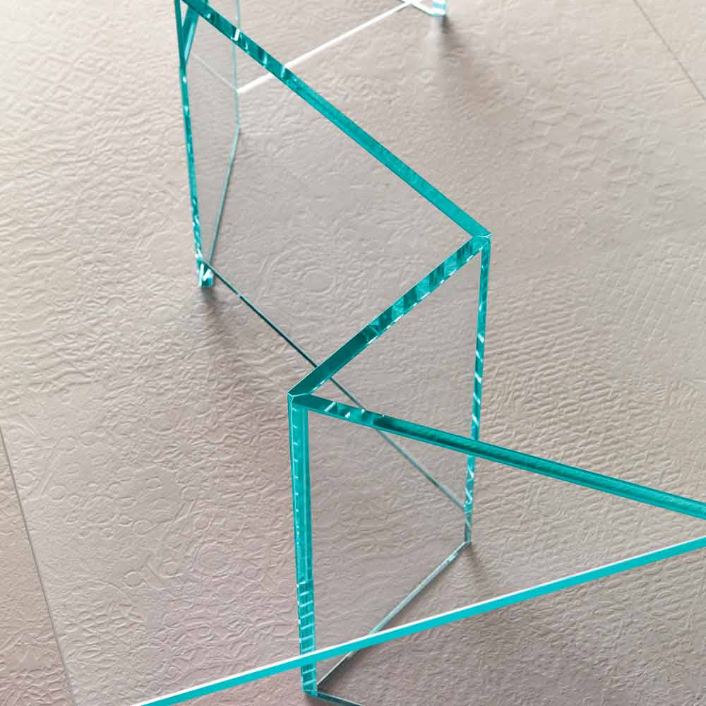 Realizat în întregime din sticlă extra-clară atât pentru bază cât și pentru partea superioară, este o piesă de mobilier realizată manual în Italia cu materiale de înaltă calitate, ideală pentru zona de zi.