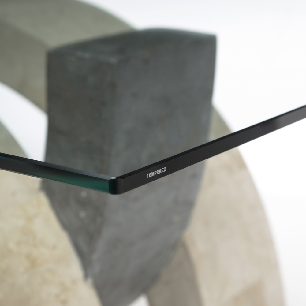 Masuta de cafea moderna din piatra si blat din sticla de 10 mm, margine lustruita.
