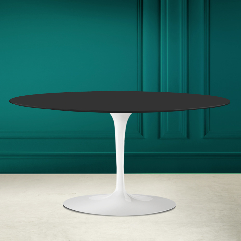 Masuta de cafea cu blat oval din ceramica neagra moale si baza din aluminiu lustruit Made in Italy