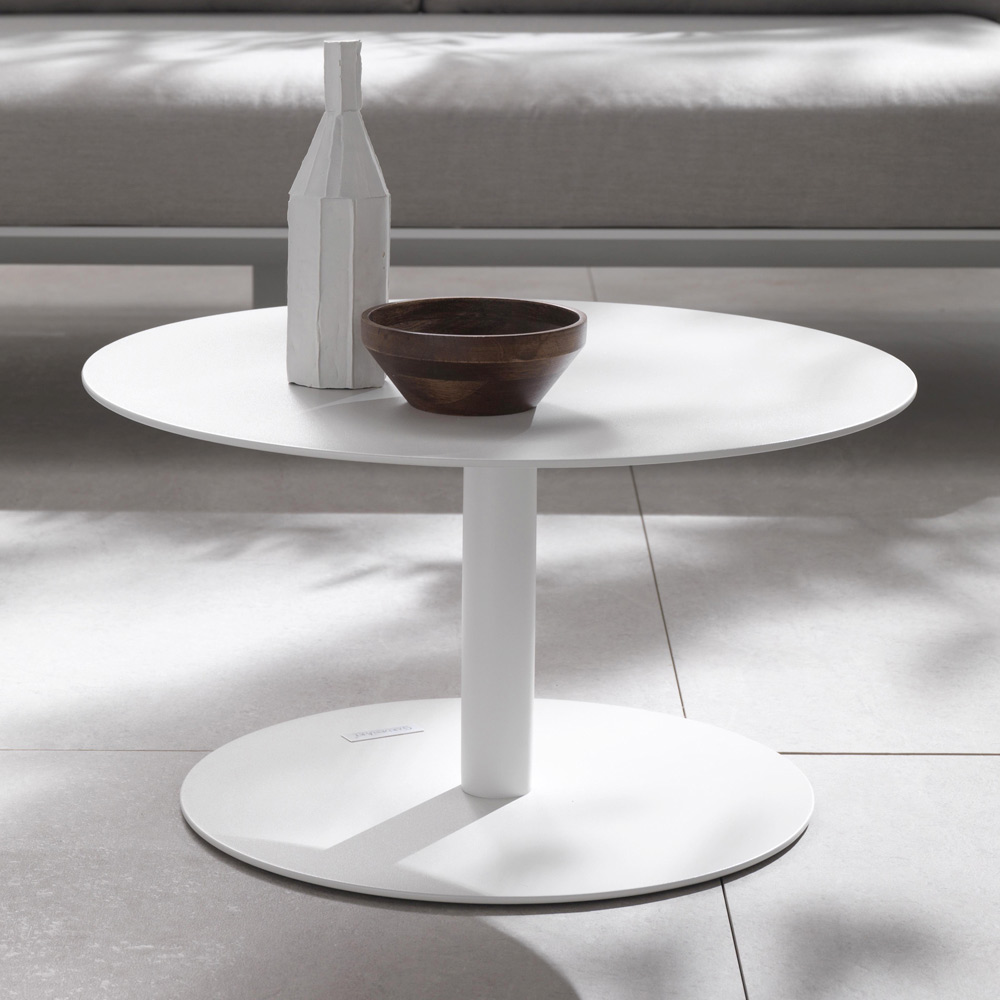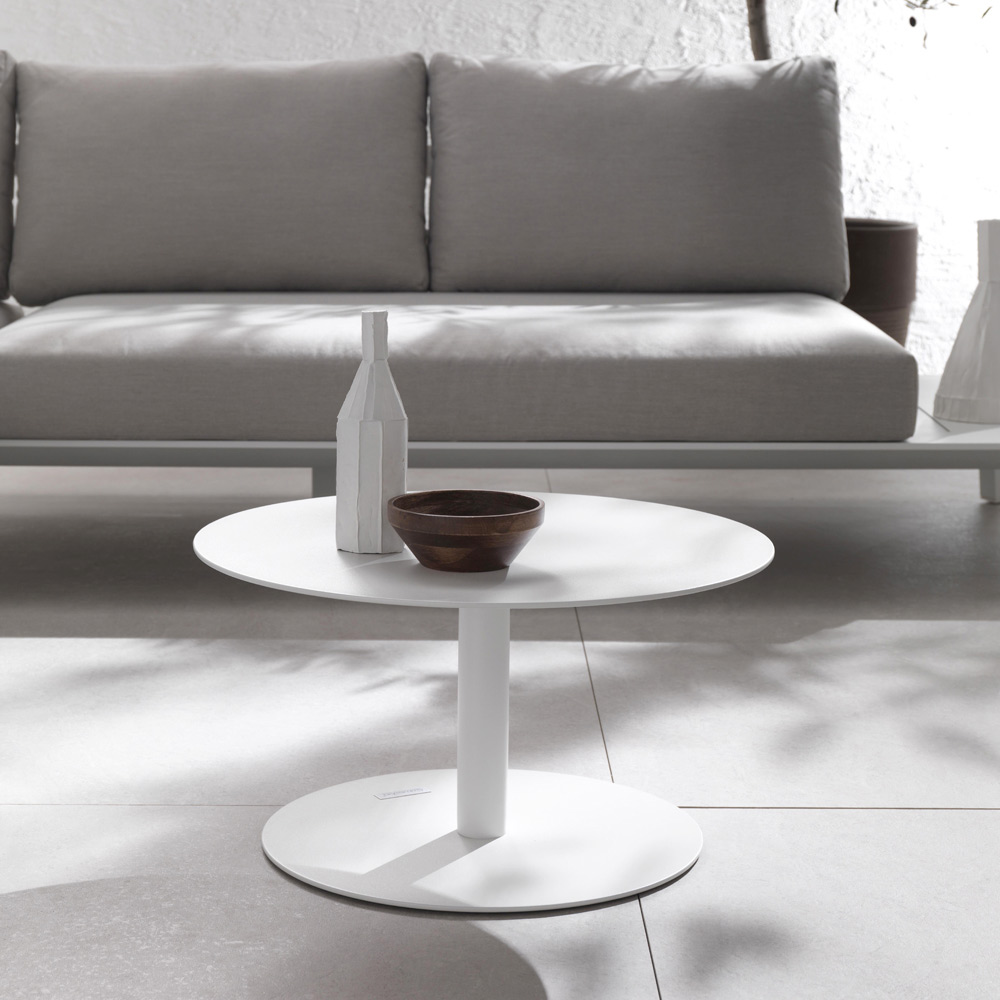 Masuta laterala pentru gradina formata dintr-un blat si structura din aluminiu vopsit cu pulberi epoxidice in alb. Caracterizată printr-un design moale, liniar și simplu, această măsuță de cafea este perfectă pentru mobilarea oricărui mediu exterior precum terase, piscine și grădini, găsindu-și în același timp locul în diferitele zone de locuit interioare ca punct de sprijin funcțional.