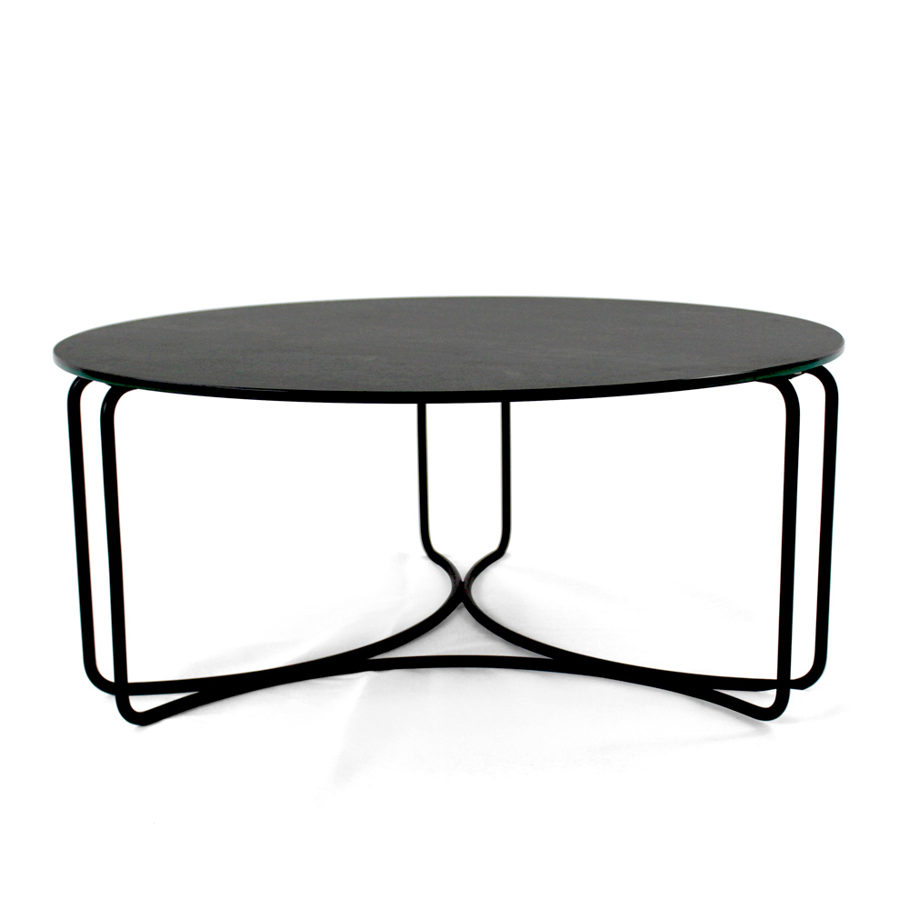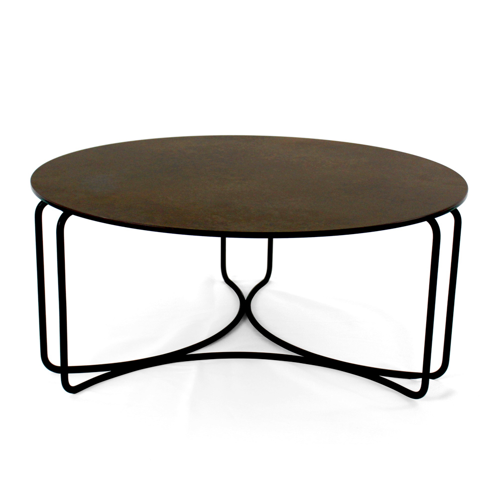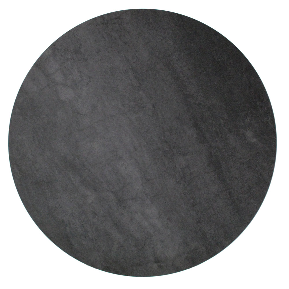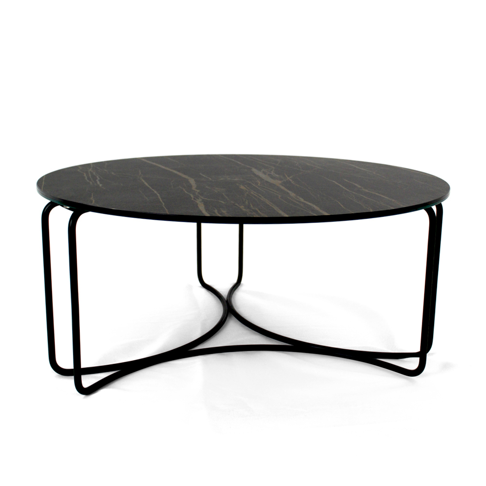 Masuta de cafea rotunda cu baza din otel vopsit si blat din gresie portelanata.
