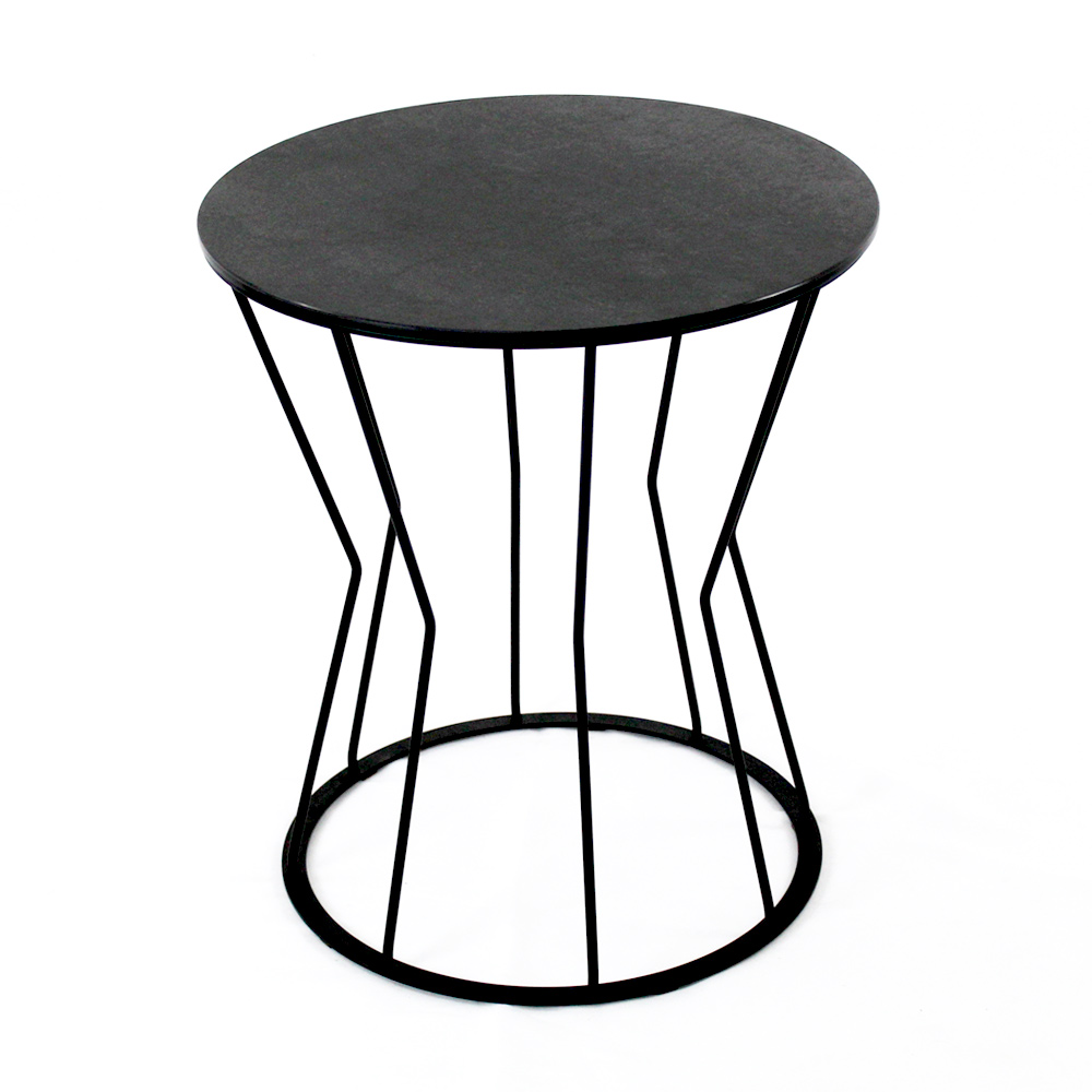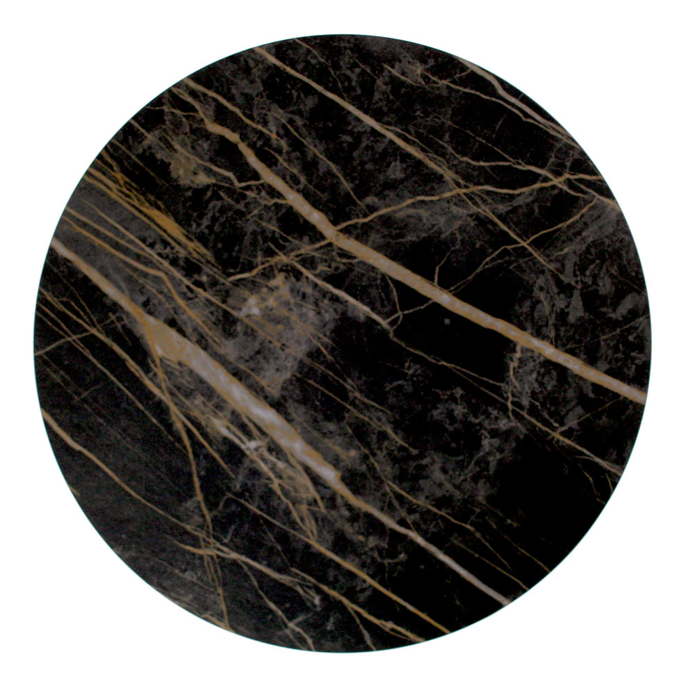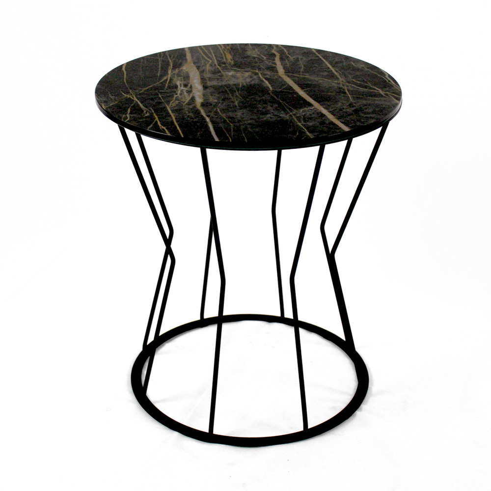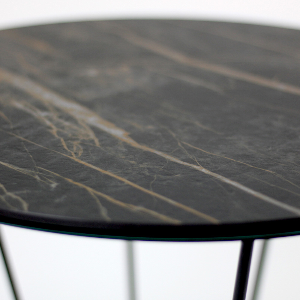 Masuta de cafea rotunda cu baza din otel vopsit si blat din gresie portelanata.