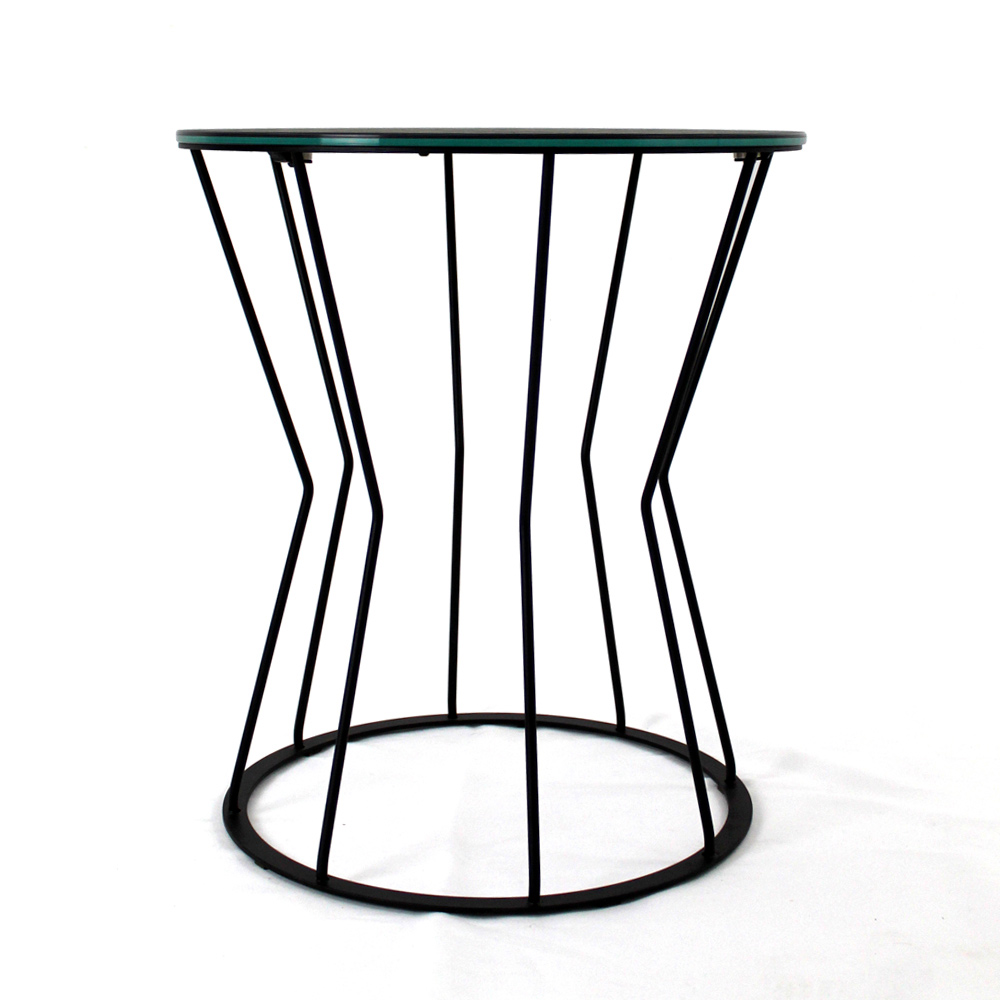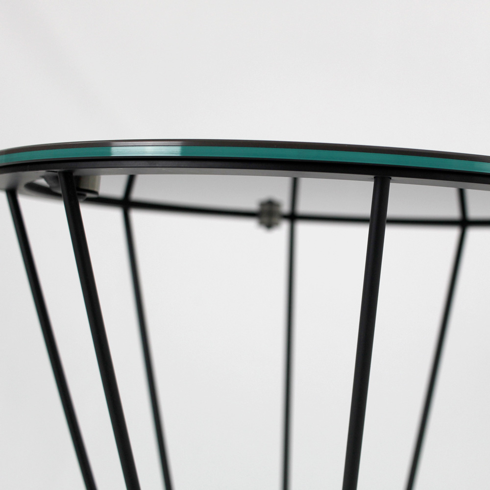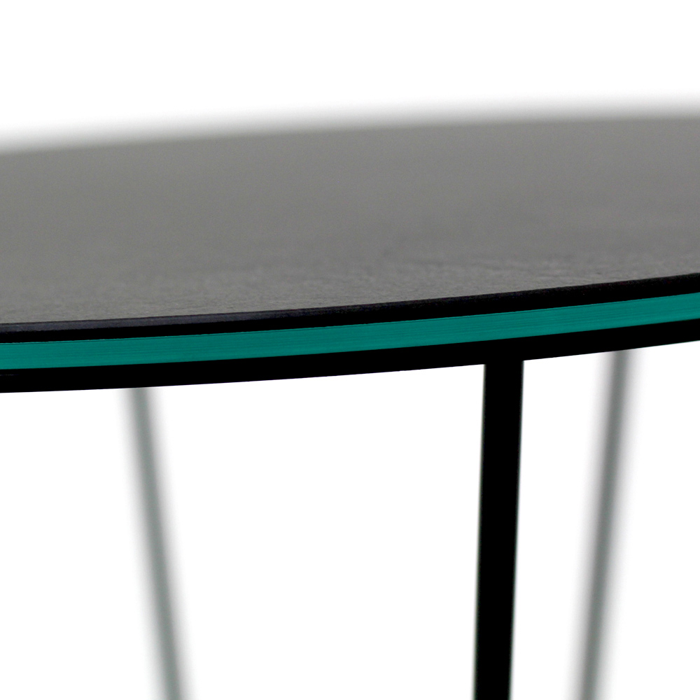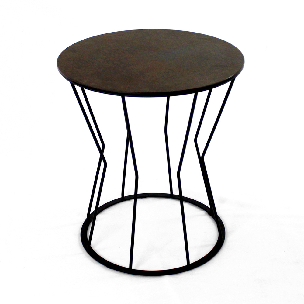 Masuta de cafea rotunda cu baza din otel vopsit si blat din gresie portelanata.