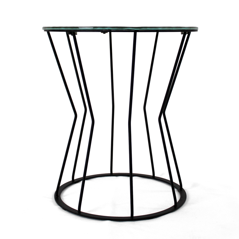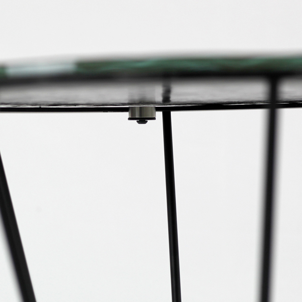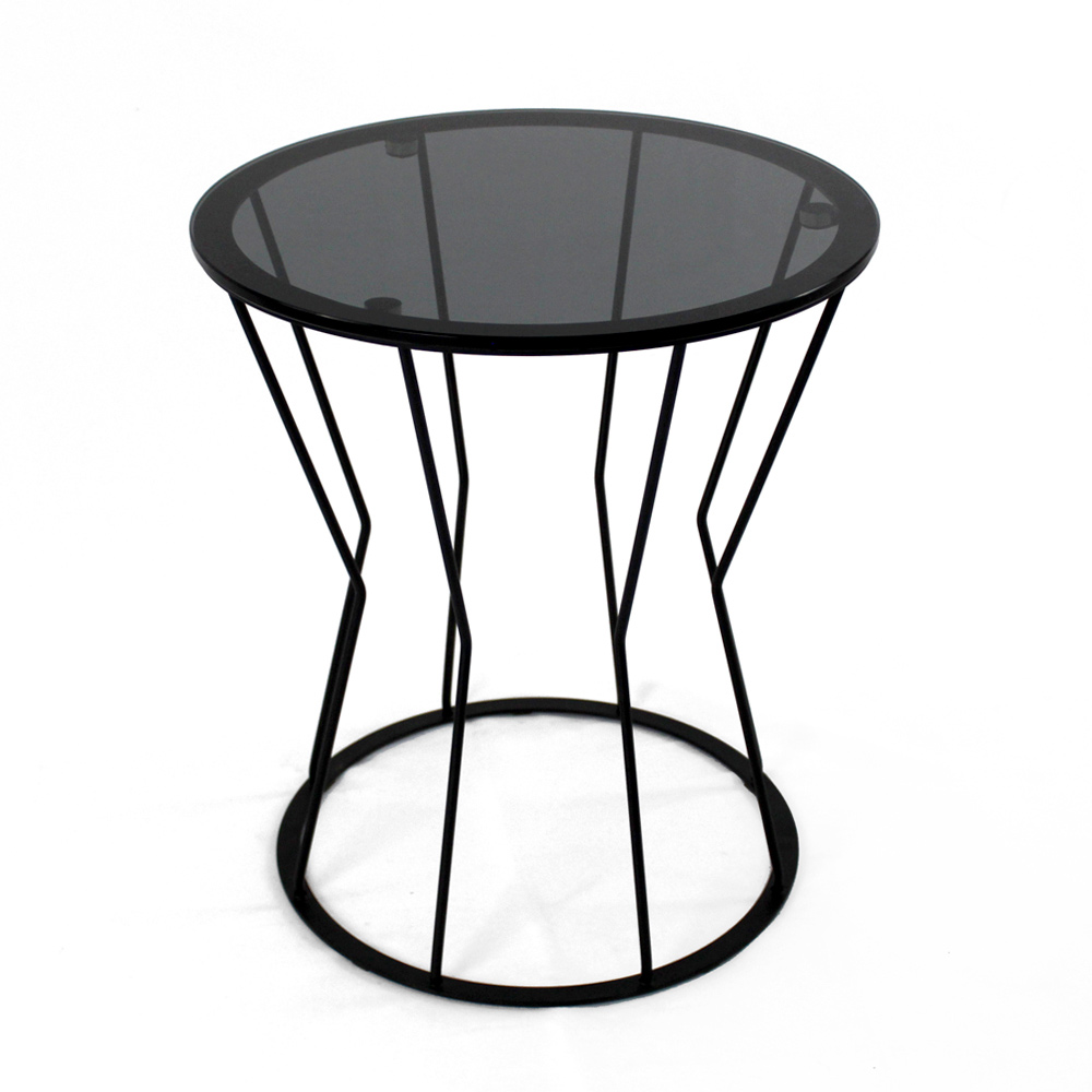 Masuta de cafea rotunda cu baza din otel vopsit si blat de sticla.