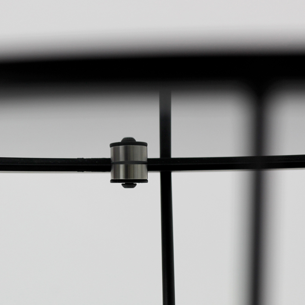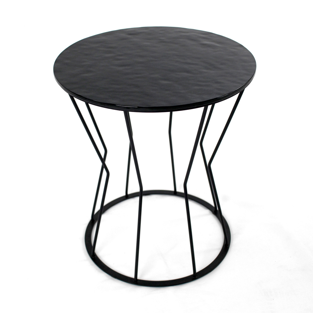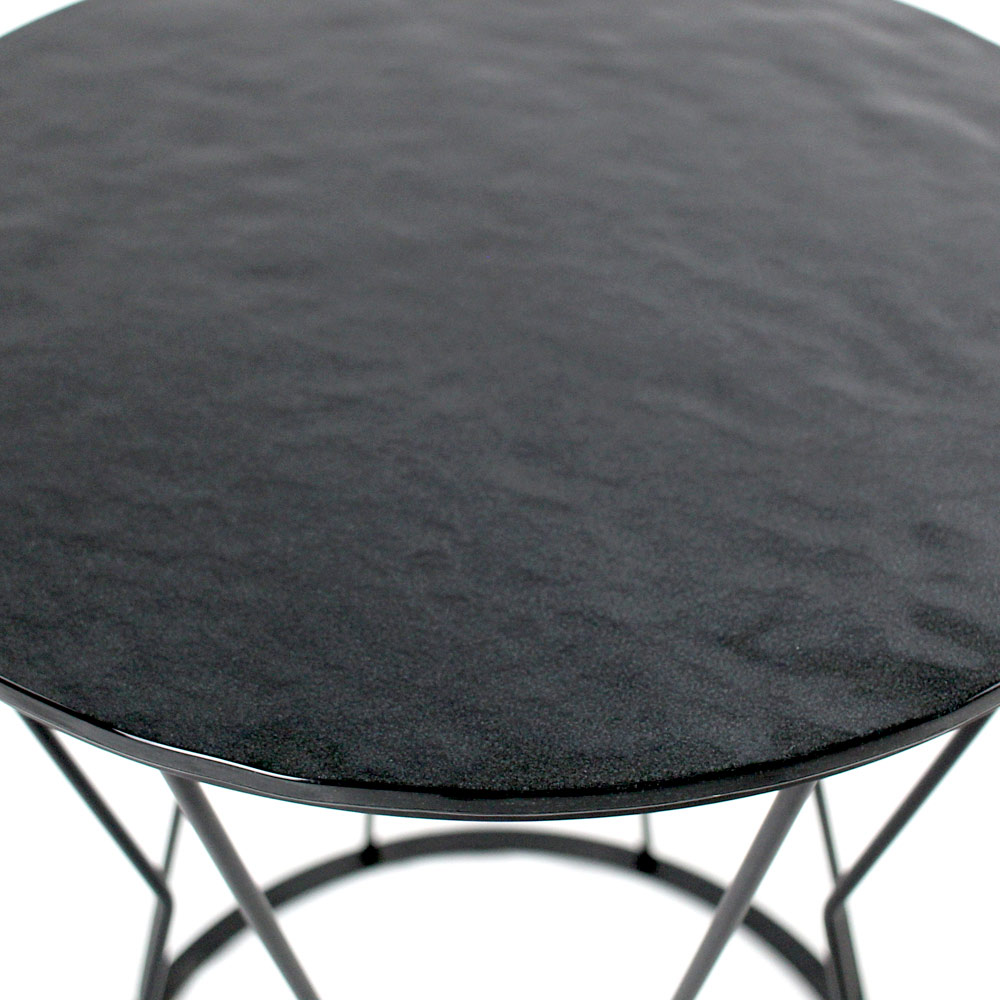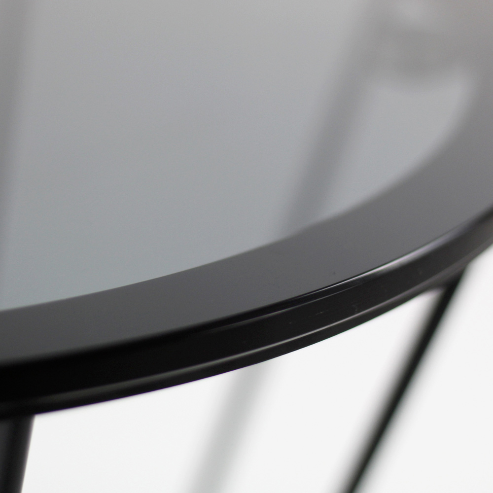 Masuta de cafea rotunda cu baza din otel vopsit si blat de sticla.