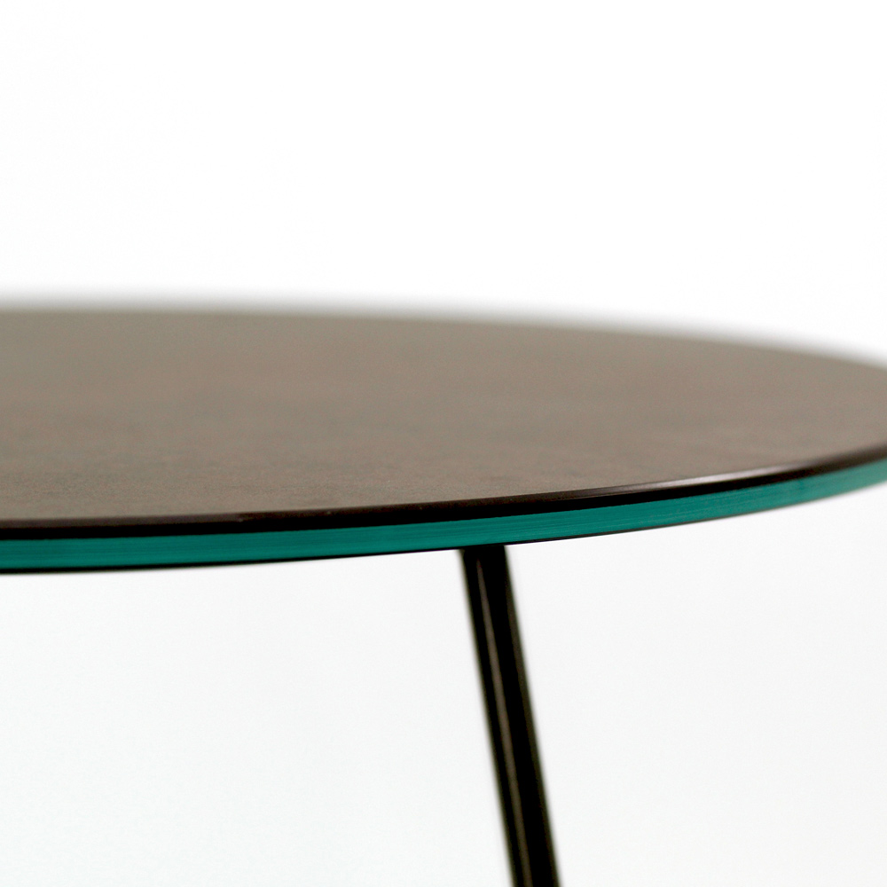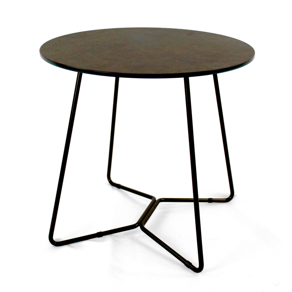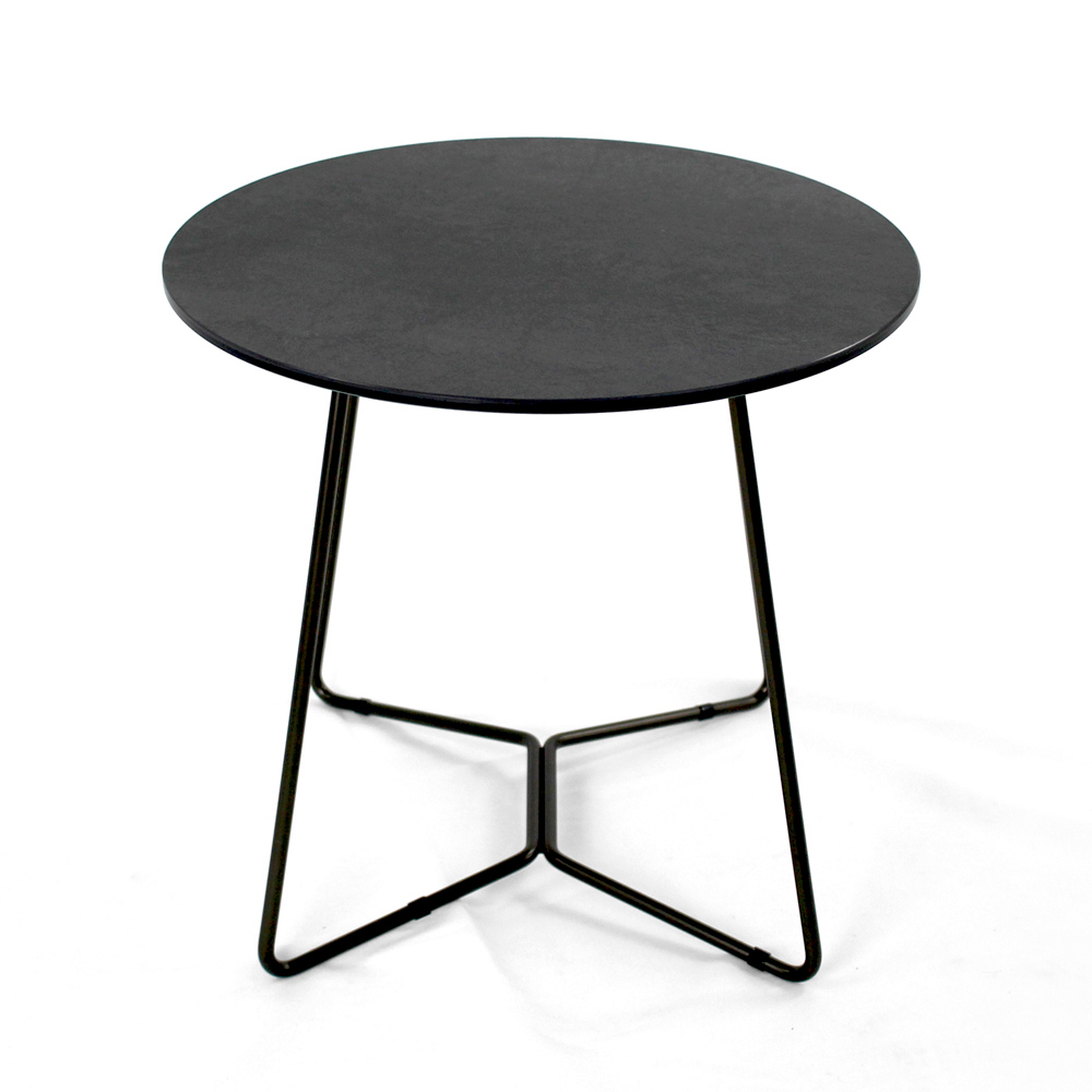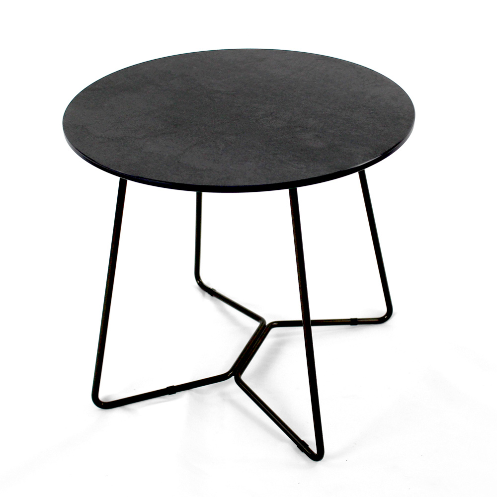 Masuta de cafea rotunda cu baza din otel vopsit si blat din gresie portelanata.