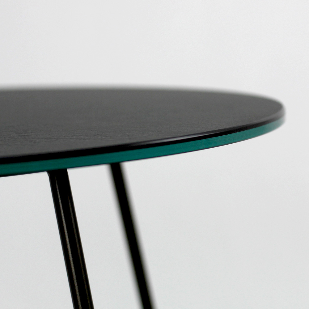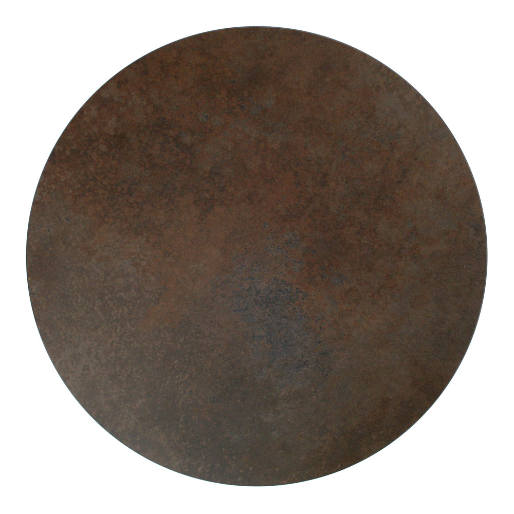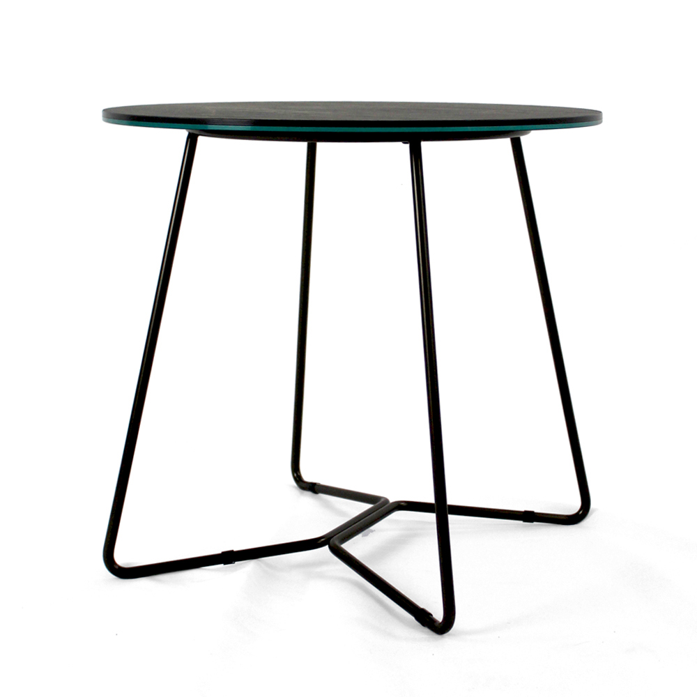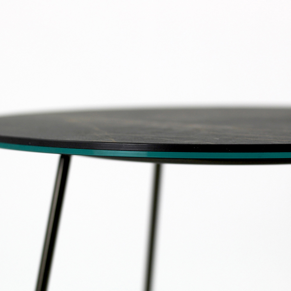 Masuta de cafea rotunda cu baza din otel vopsit si blat din gresie portelanata.