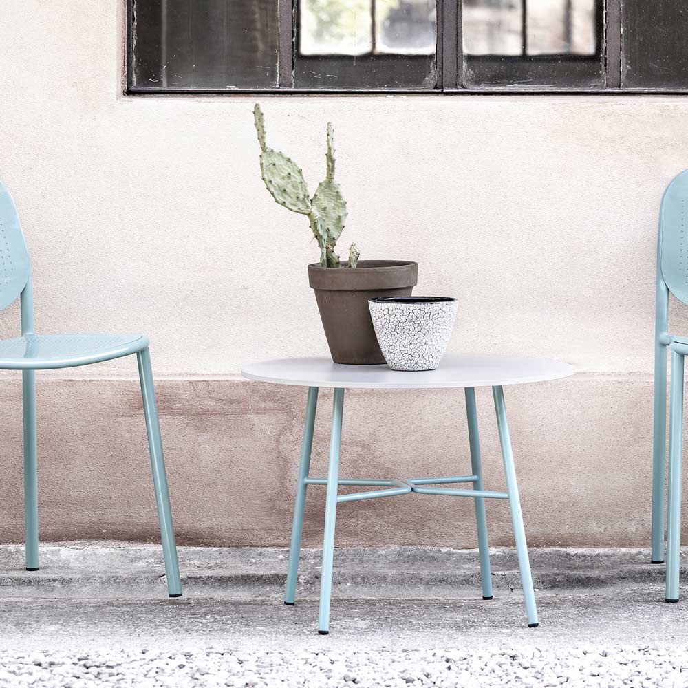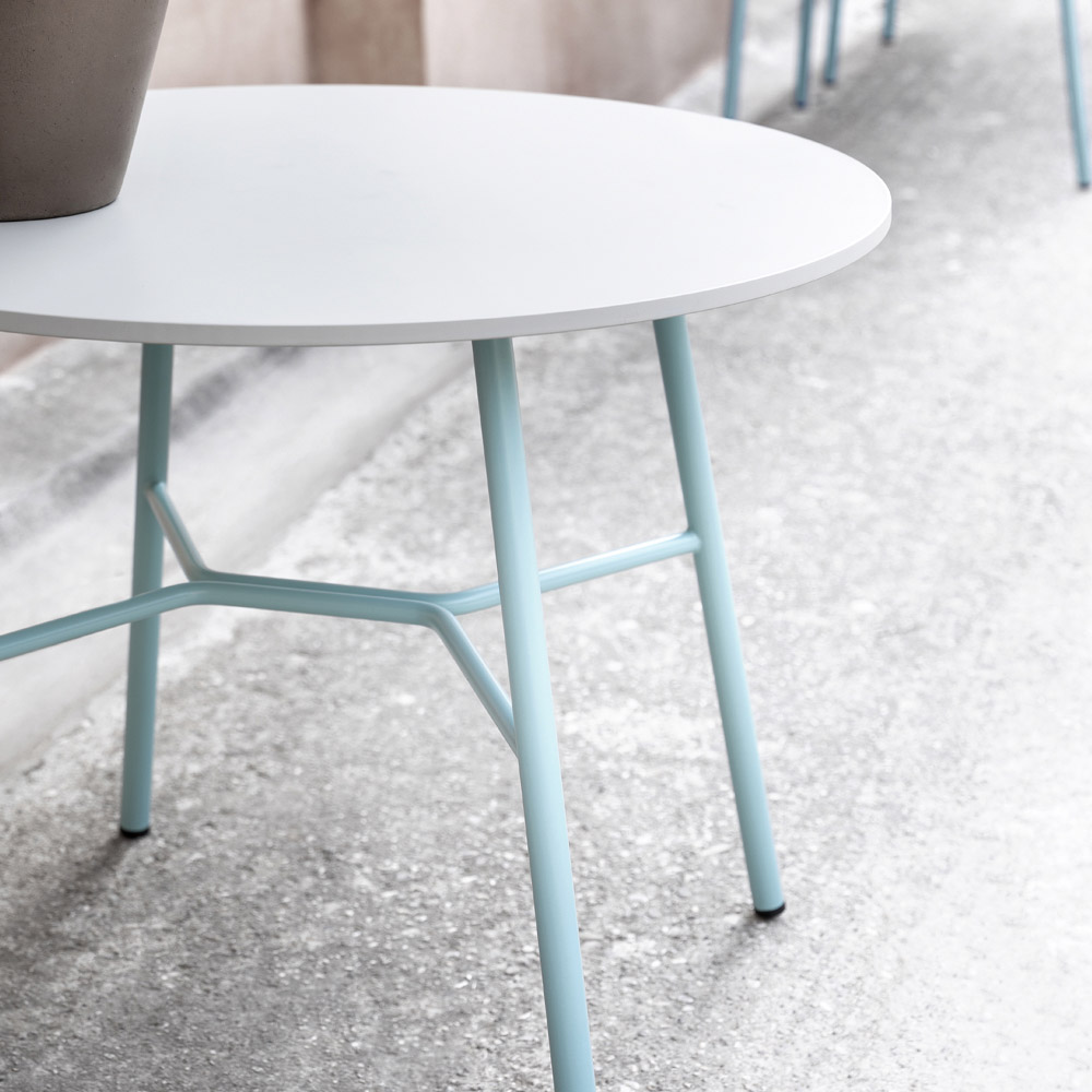 Masuta de cafea rotunda de exterior din HPL si metal vopsit Made in Italy.