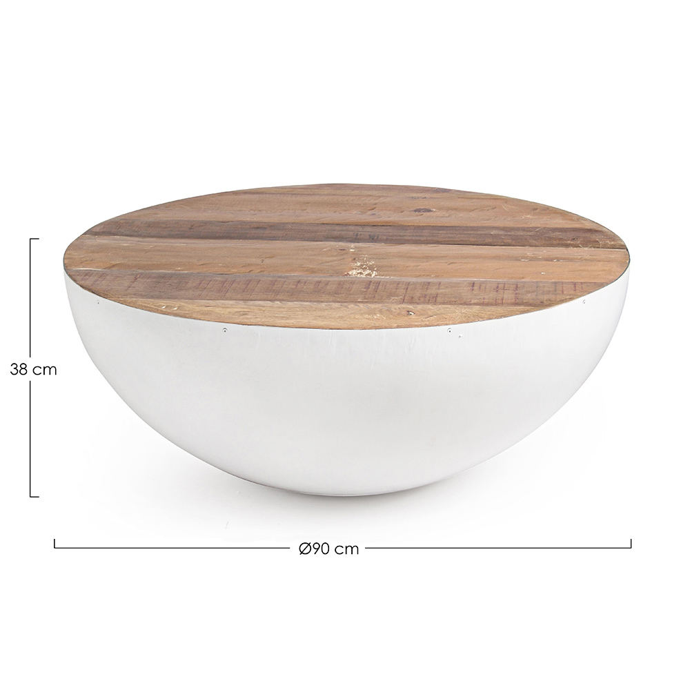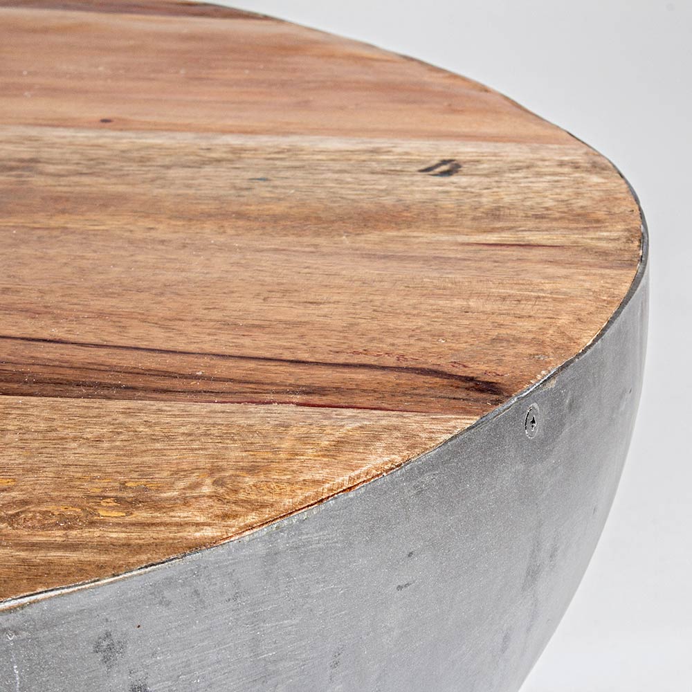 Masuta de cafea rotunda din lemn reciclat si otel, 2 culori si 2 marimi.