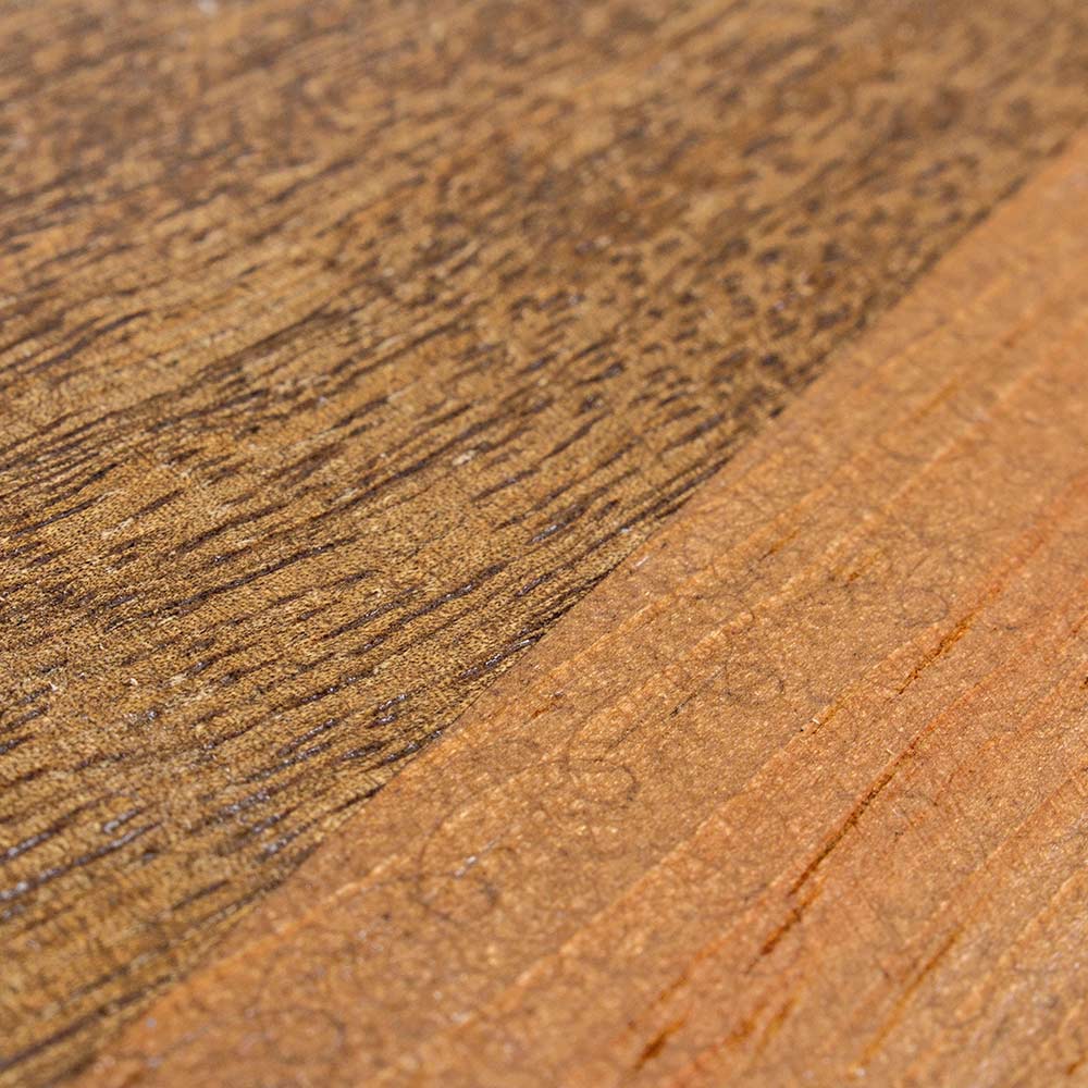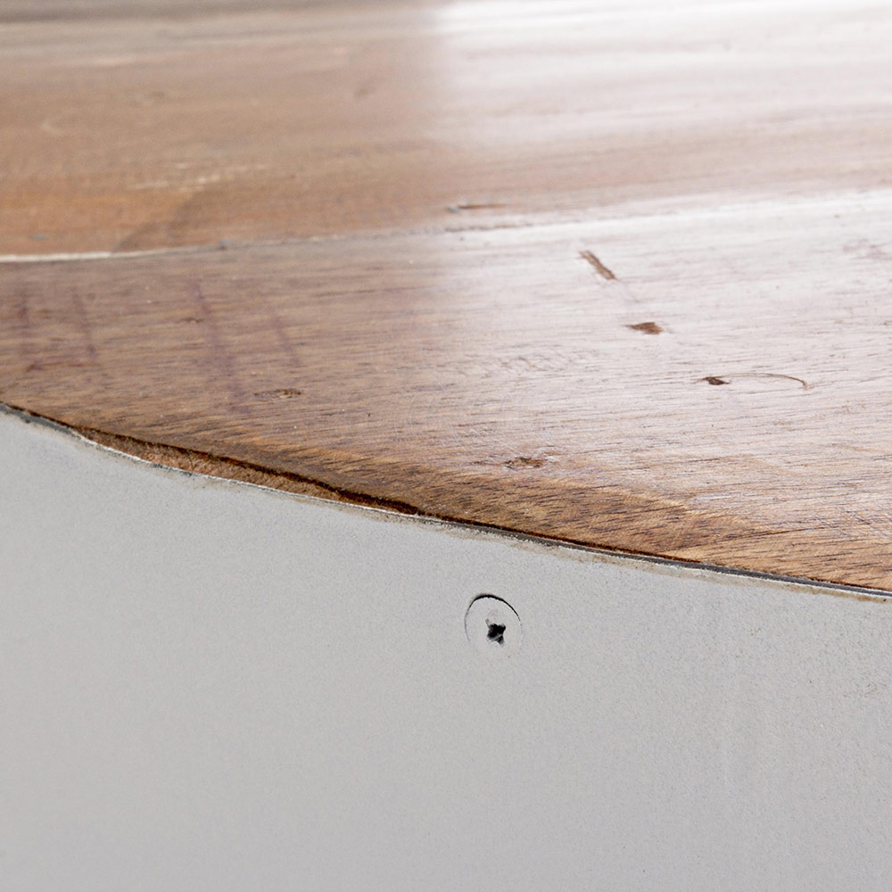 blat din lemn reciclat cu un finisaj pe bază de nitroceluloză.