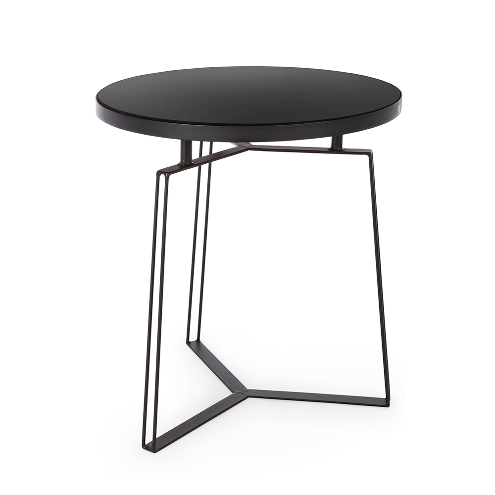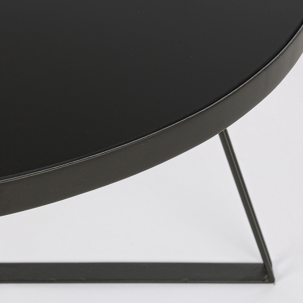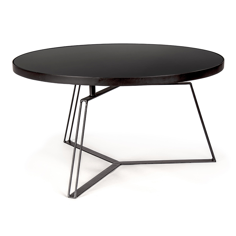 Masuta rotunda din otel negru si blat din sticla, 2 dimensiuni.