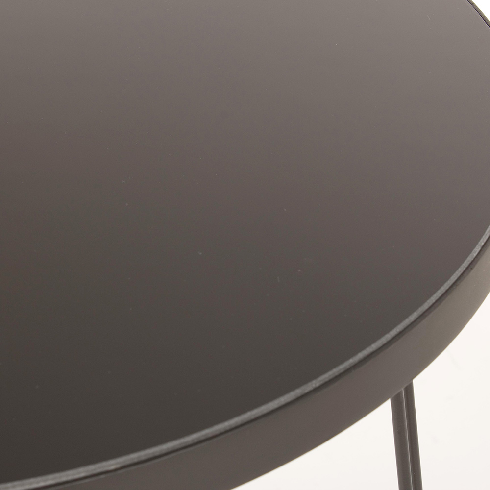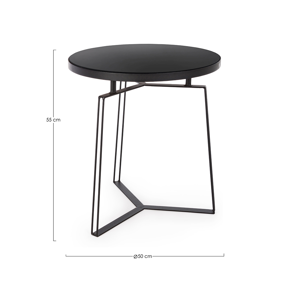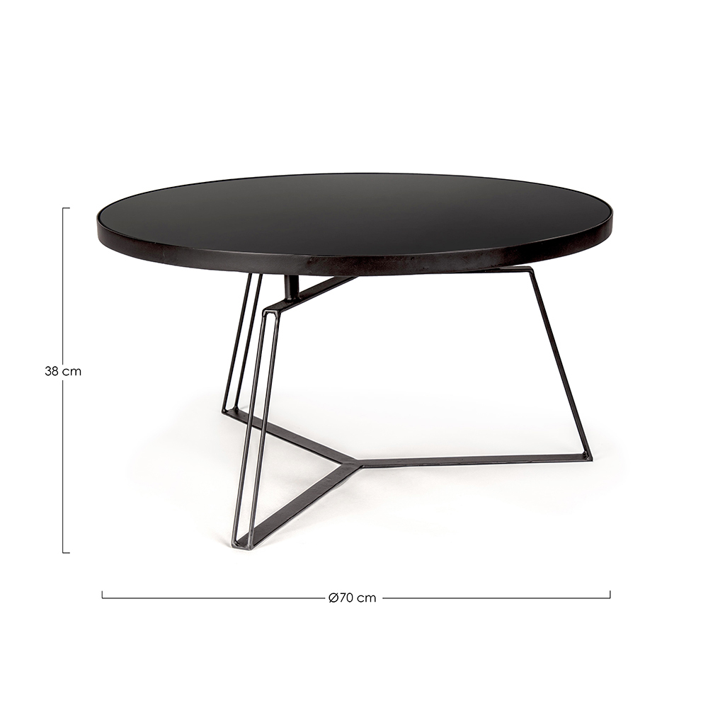 Această măsuță de cafea este realizată cu un cadru din oțelacoperit cu pulbere epoxidice și blat din sticlă. Designul său rotund este caracterizat de linii contemporane și curate , cu un stil industrial și minimal.