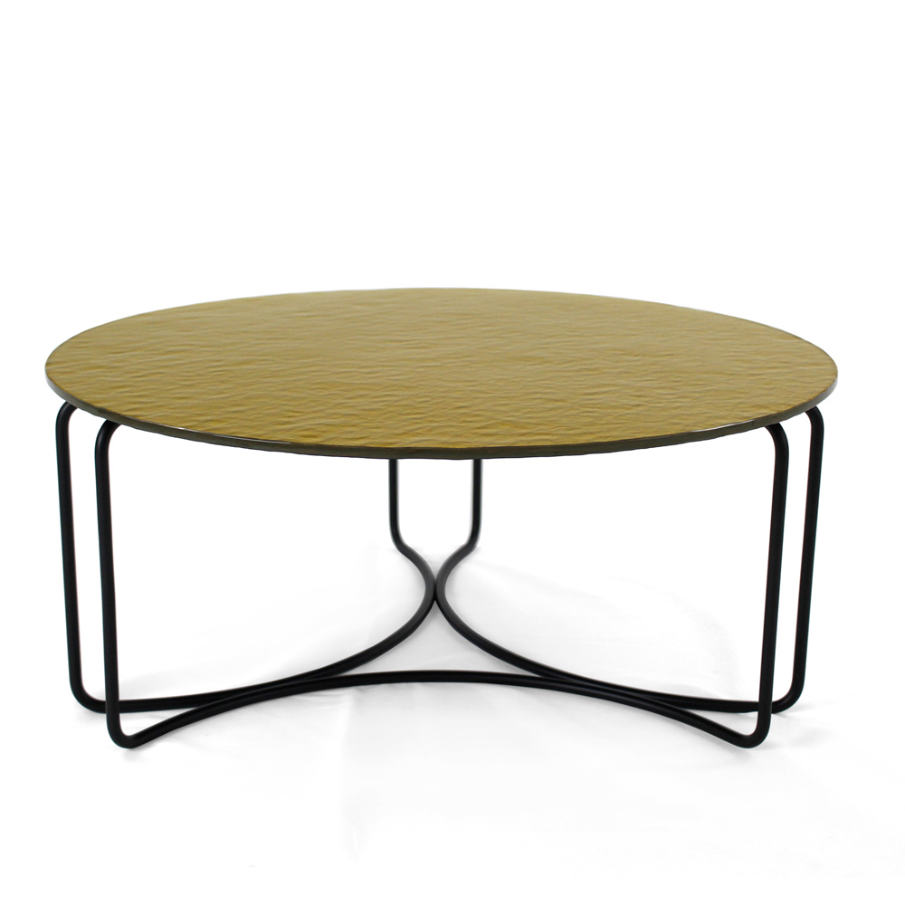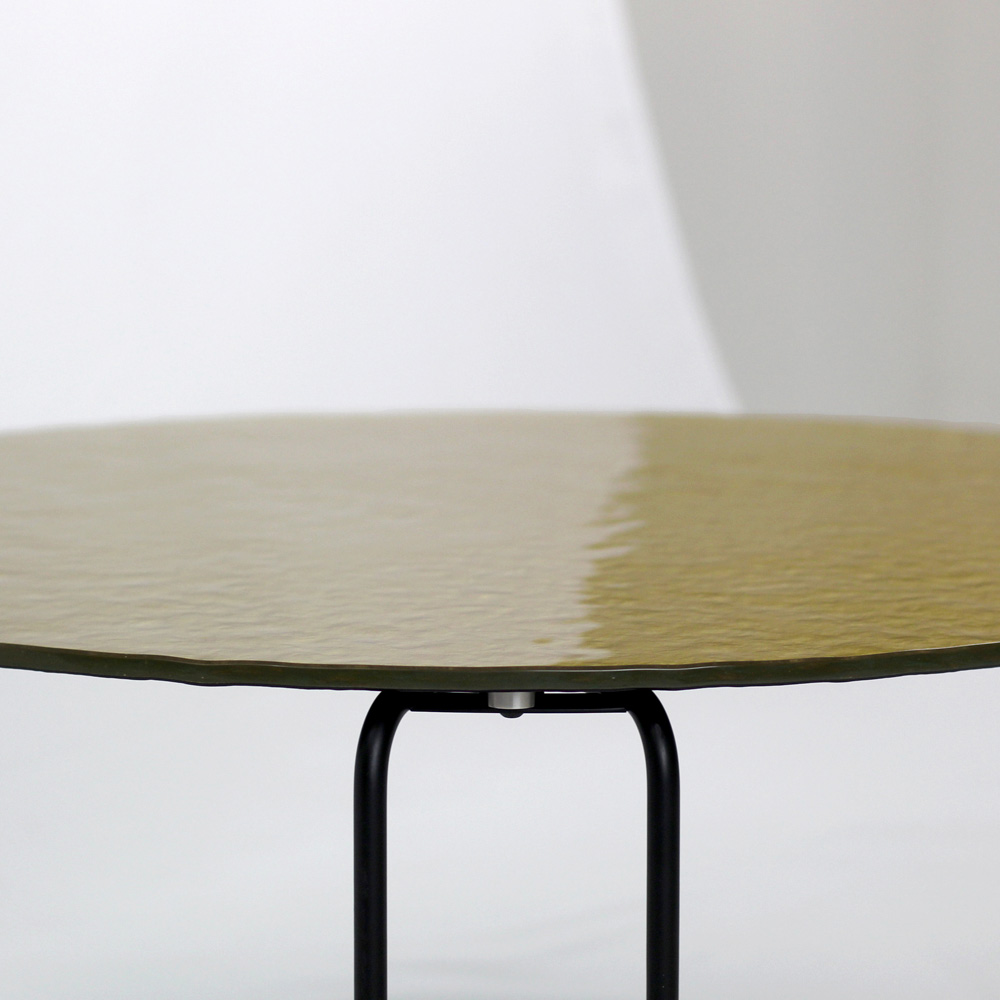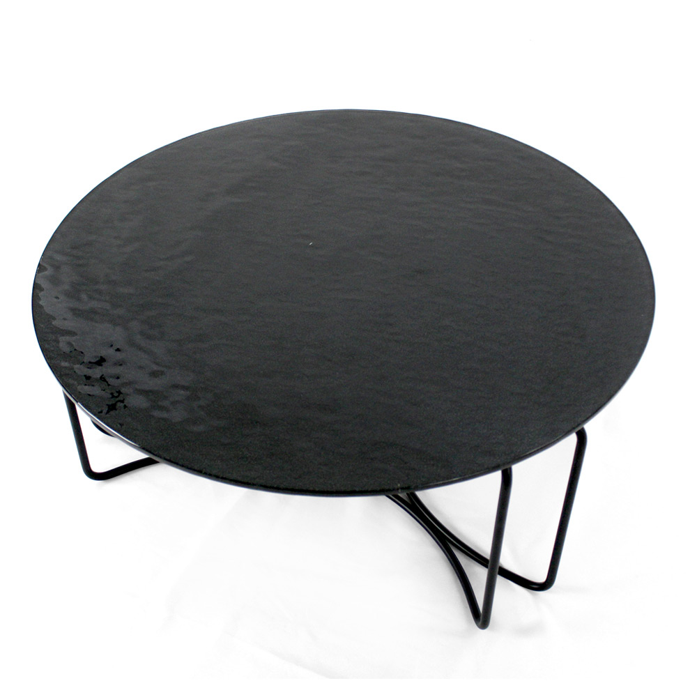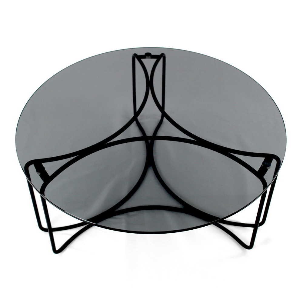 Masuta de cafea rotunda cu baza din otel vopsit si blat de sticla.
