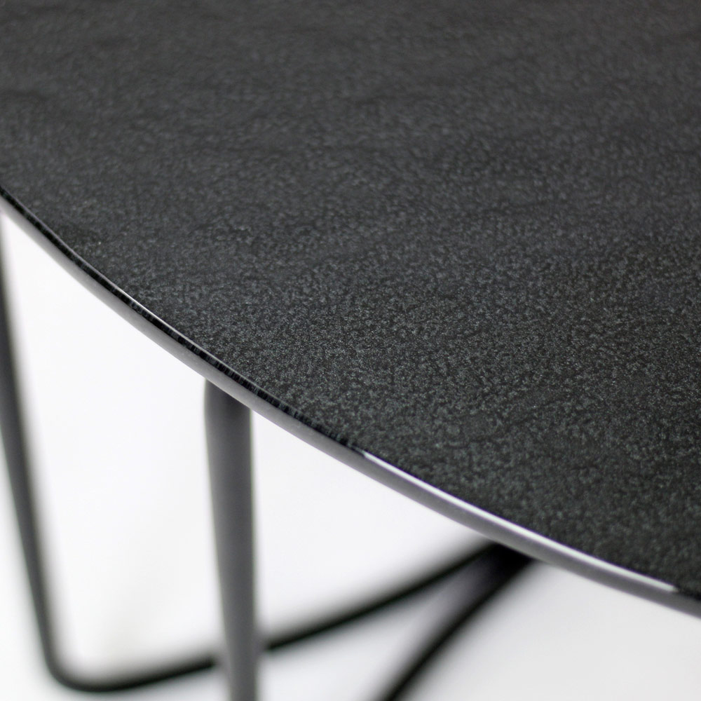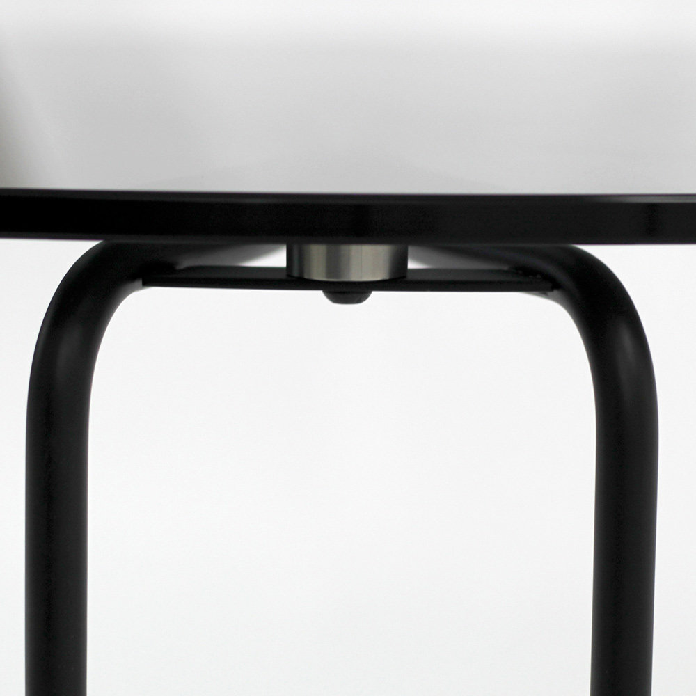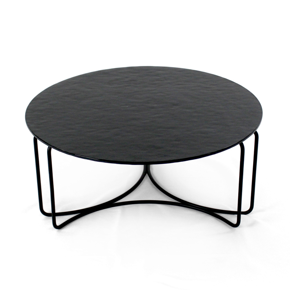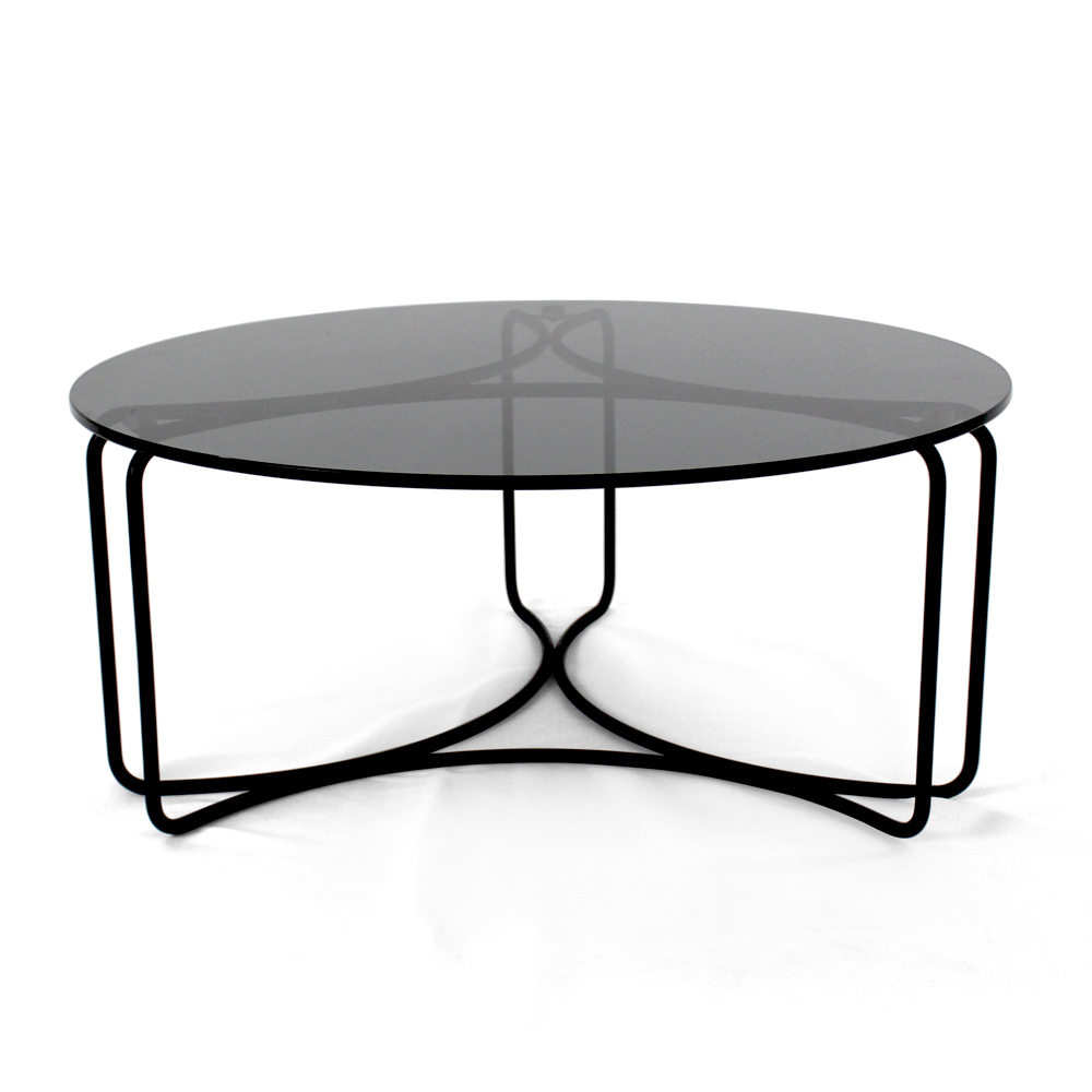 Masuta de cafea rotunda cu baza din otel vopsit si blat de sticla.