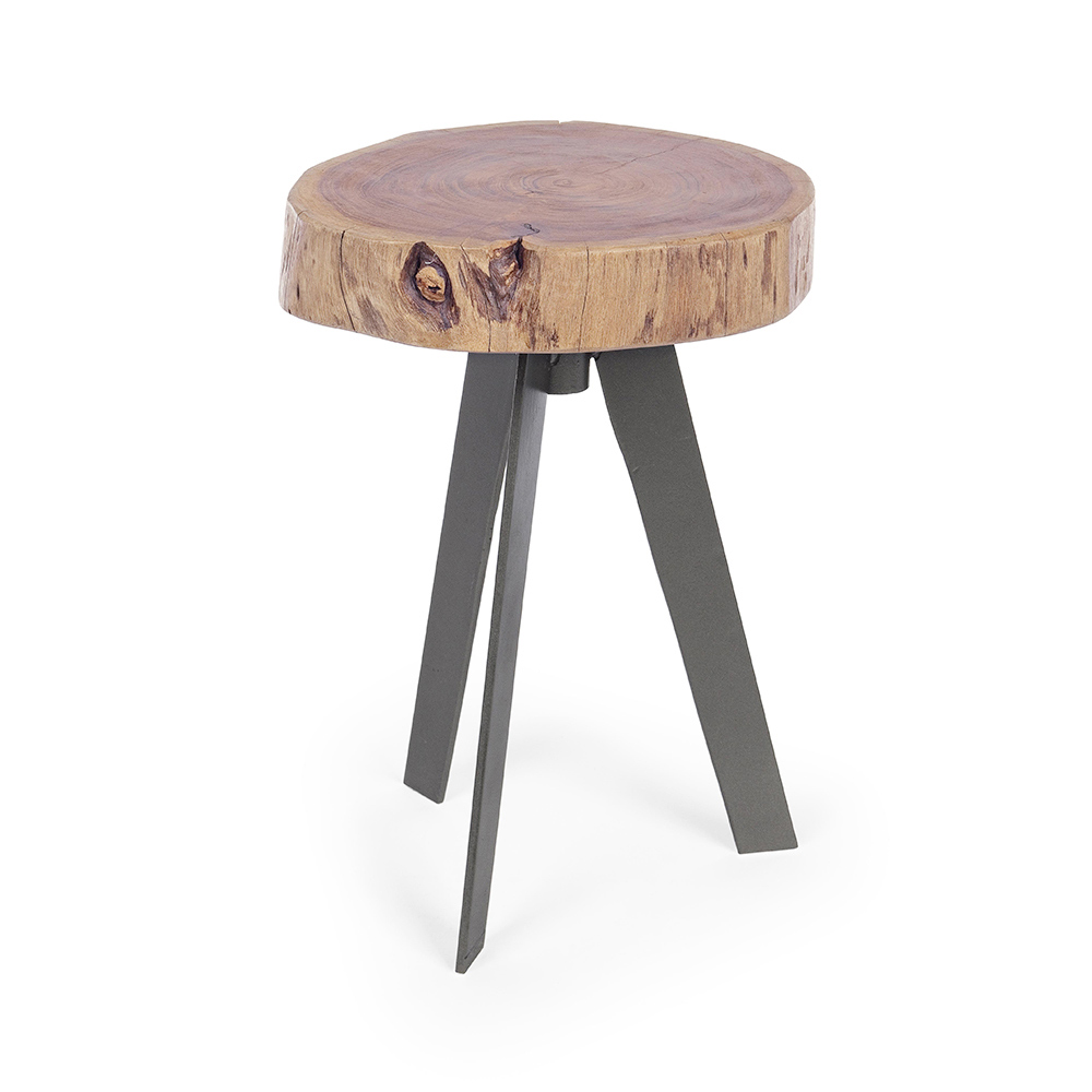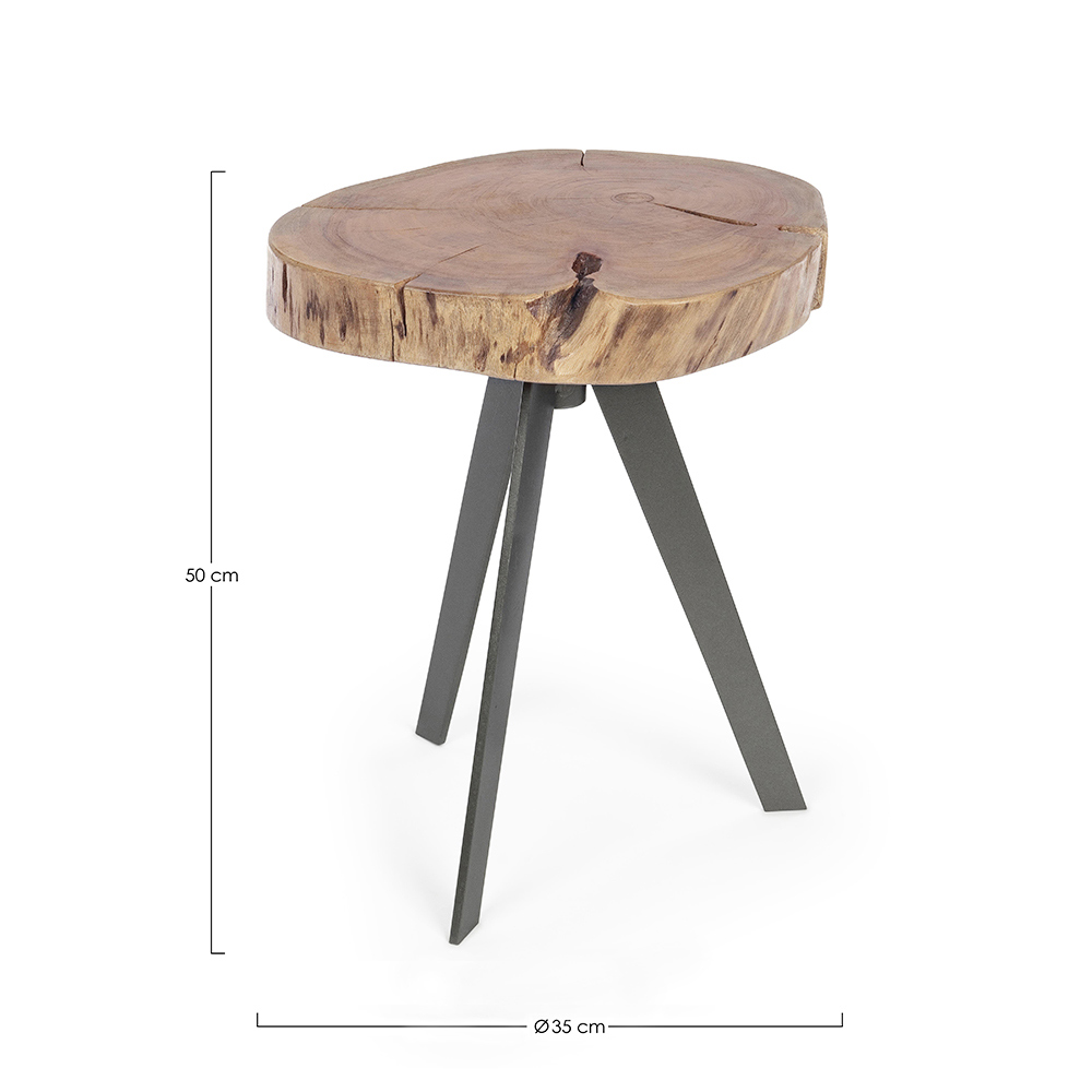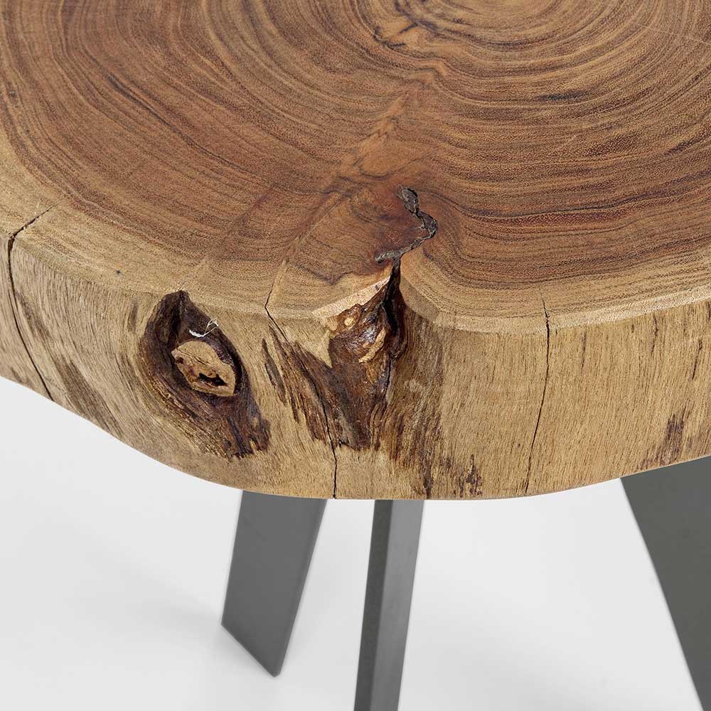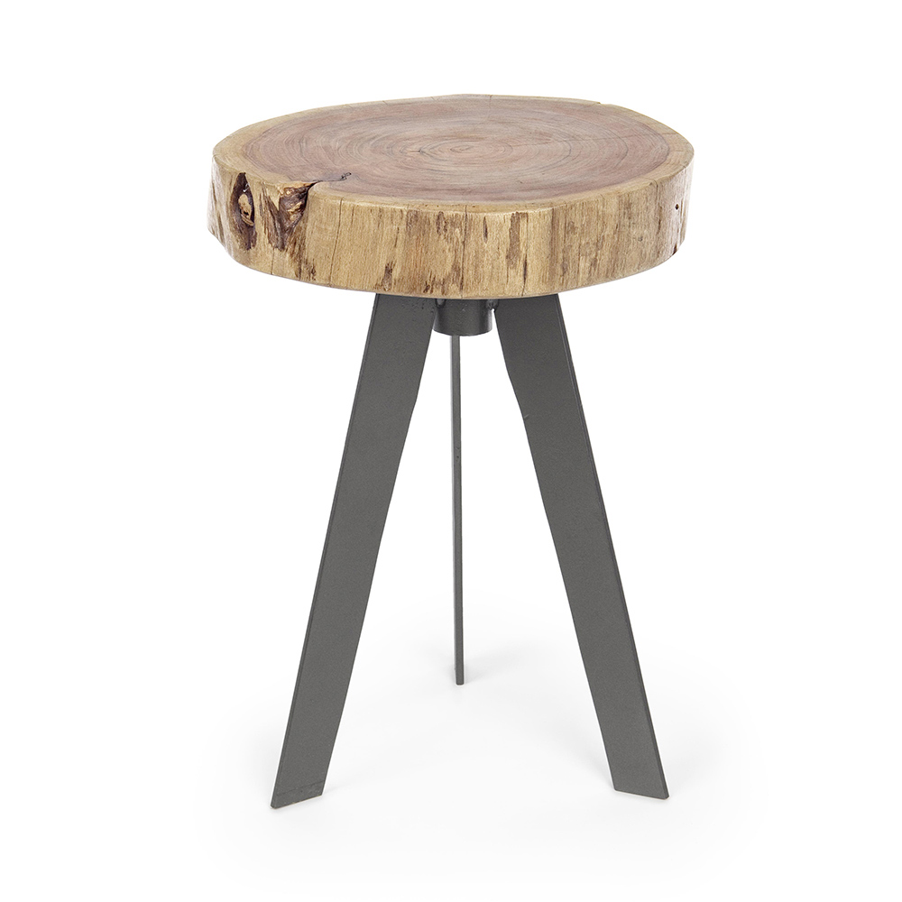 Masuta de cafea rotunda din lemn de salcam si otel, 2 dimensiuni.