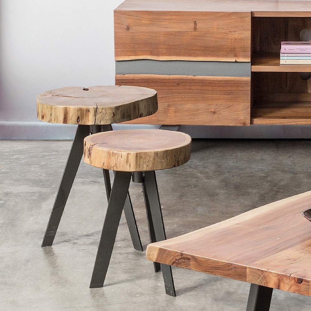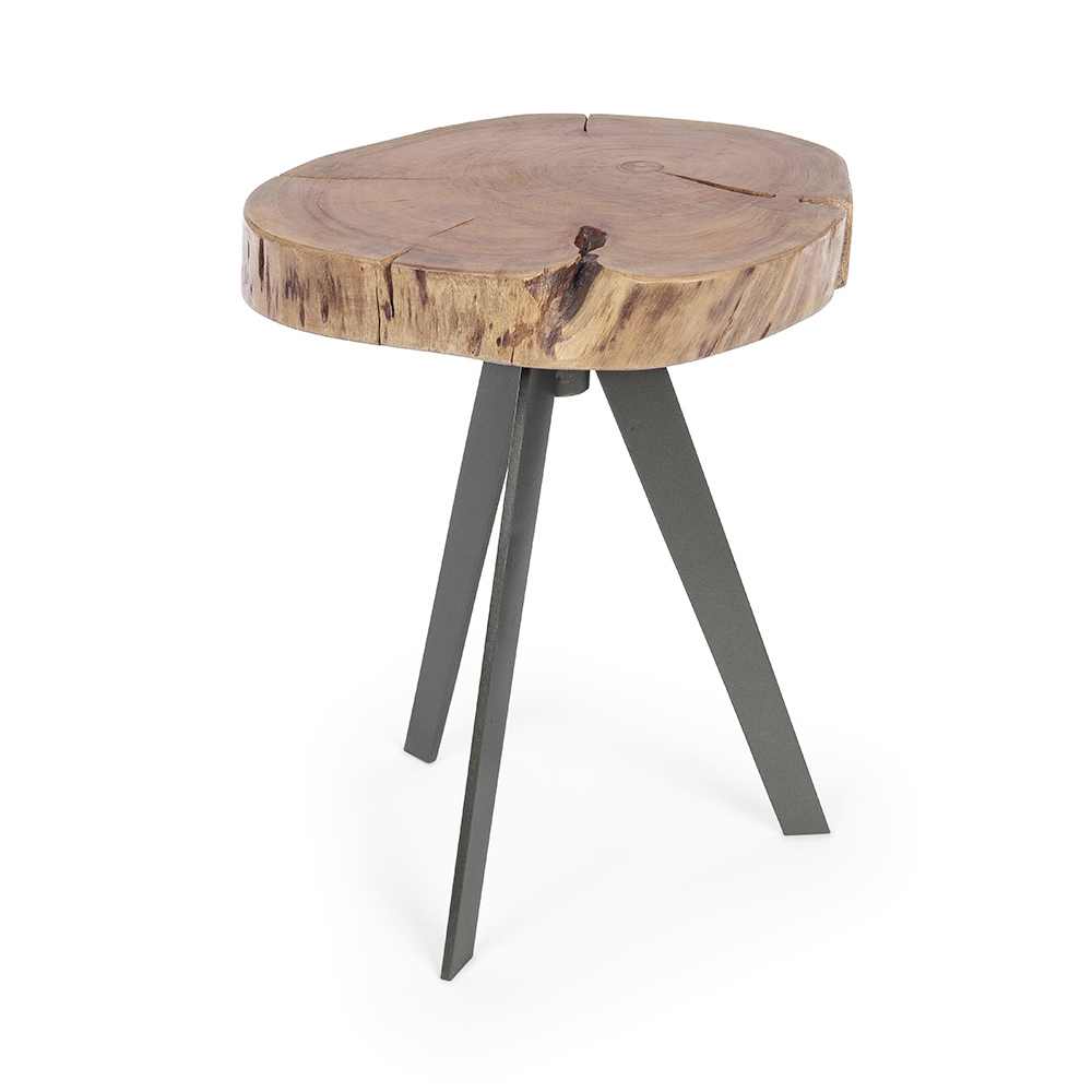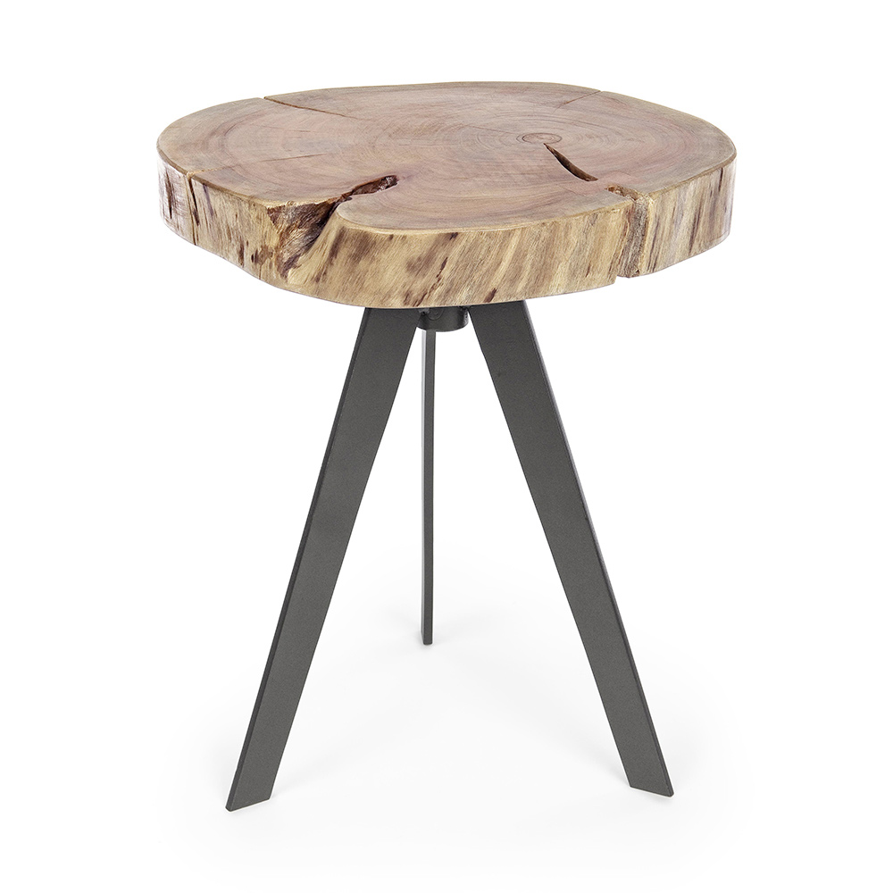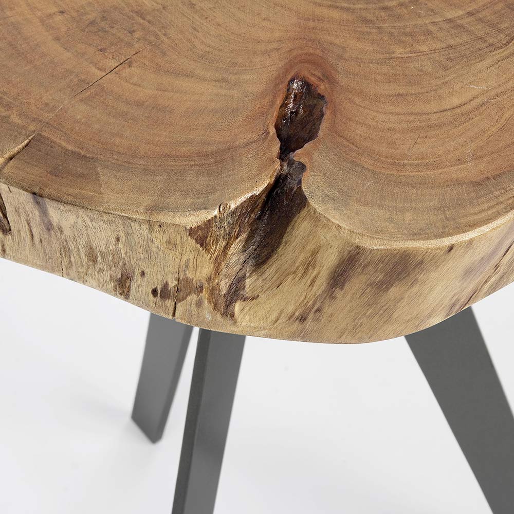 Masuta de cafea rotunda din lemn de salcam si otel, 2 dimensiuni.
