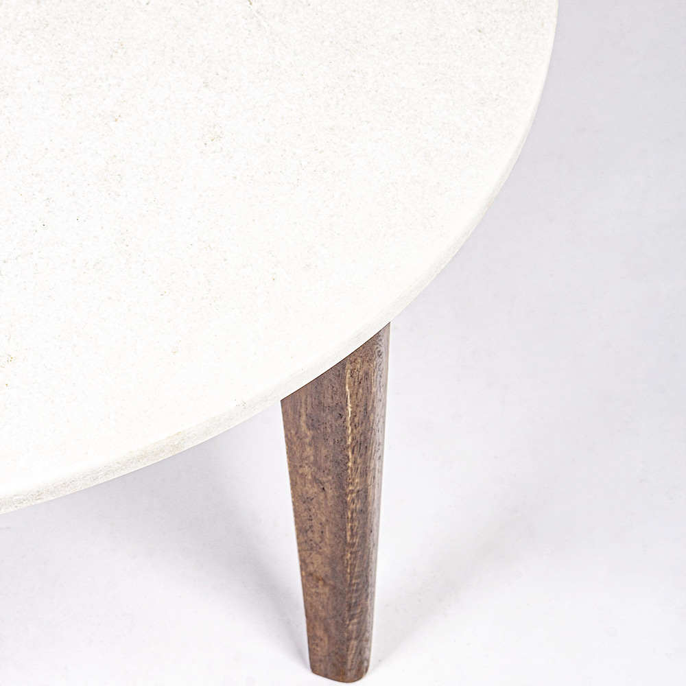 Masuta de cafea rotunda pentru living din marmura si lemn de mango - Desiderio