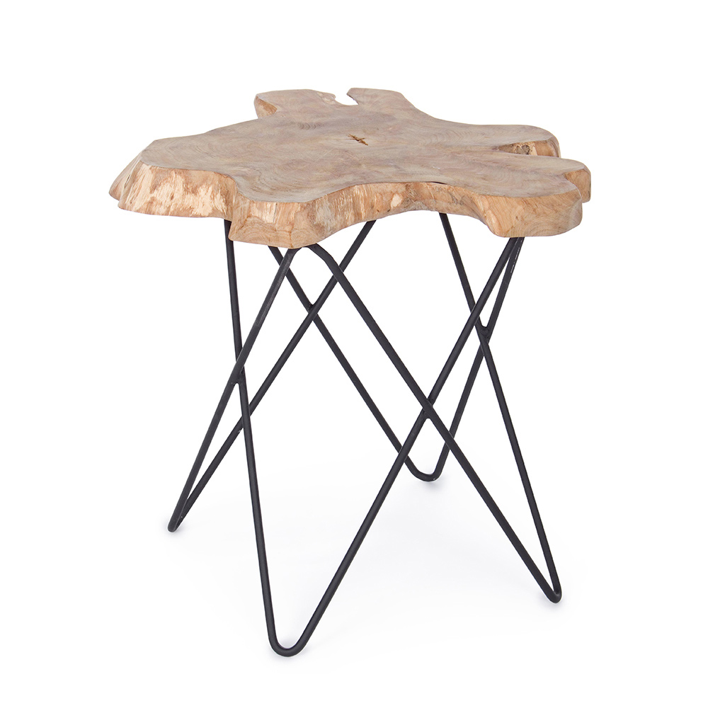 Această măsuță de cafea pentru living este realizată cu o podea din rădăcini de tec cu finisaj natural Și picioare din oțel acoperit cu pulbere epoxidică.