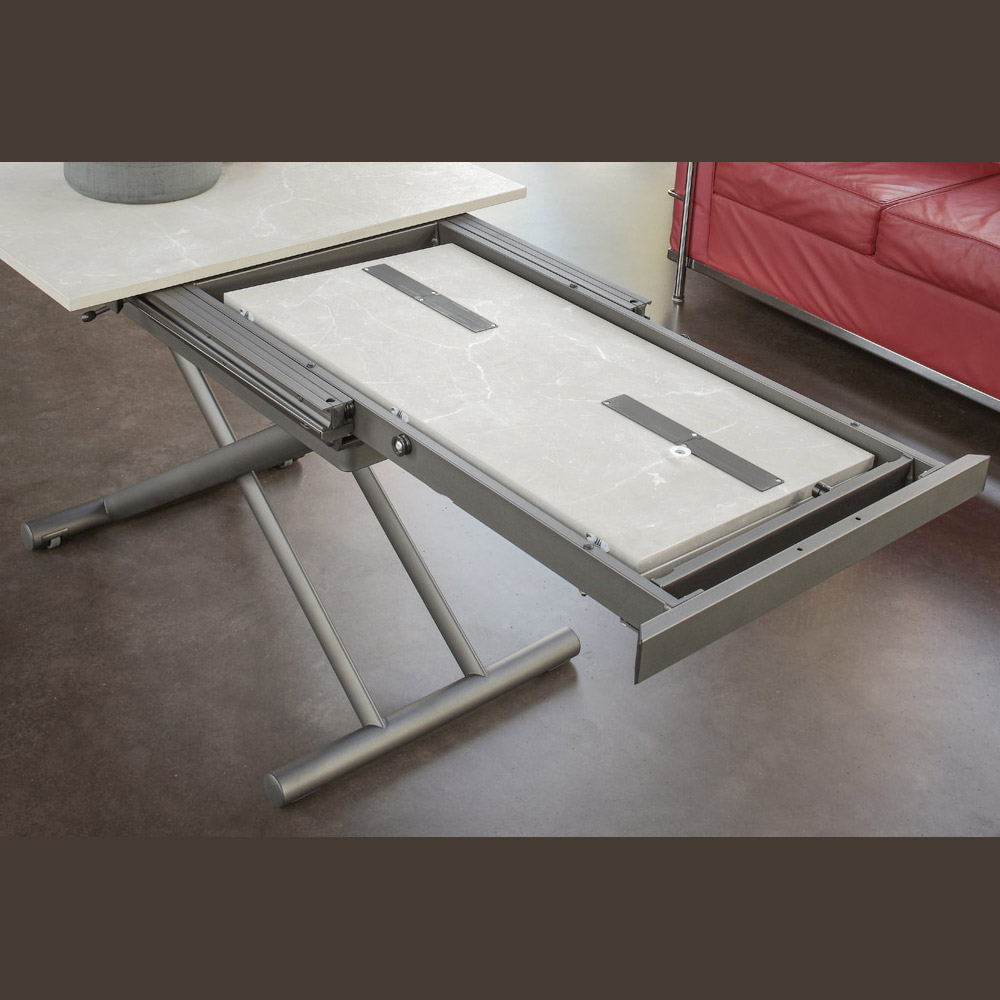 Dar adevărata magie se întâmplă atunci când se transformă. Cu o acțiune simplă, această piesă versatilă se ridică și se extinde, transformându-se într-o masă spațioasă și primitoare. Mecanismul este fluid și intuitiv, conceput pentru a oferi funcționalitate maximă fără a sacrifica stilul.