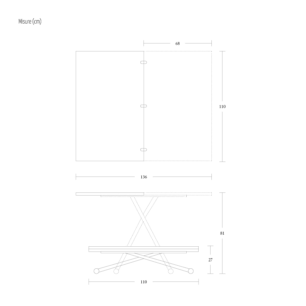 Masuta de cafea transformabila din lemn melaminat si metal Made in Italy.