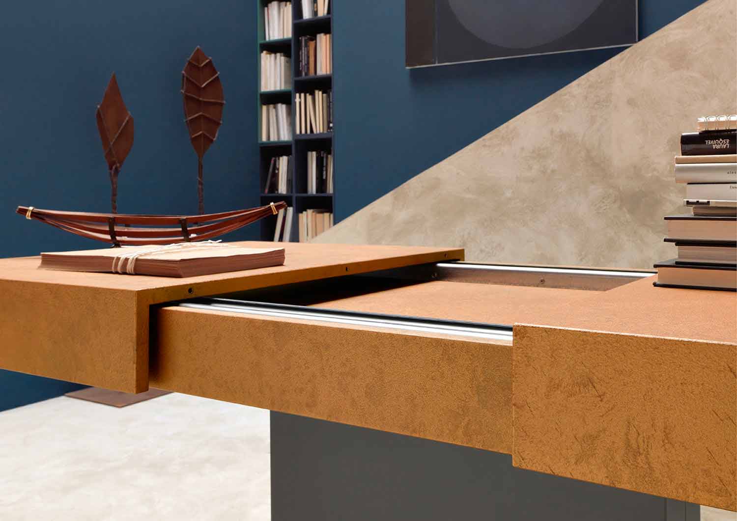 Disponibil în diferite finisaje:- blat corten negru cu efect mortar;