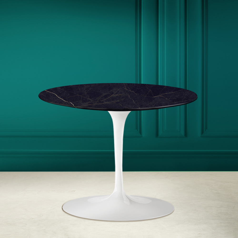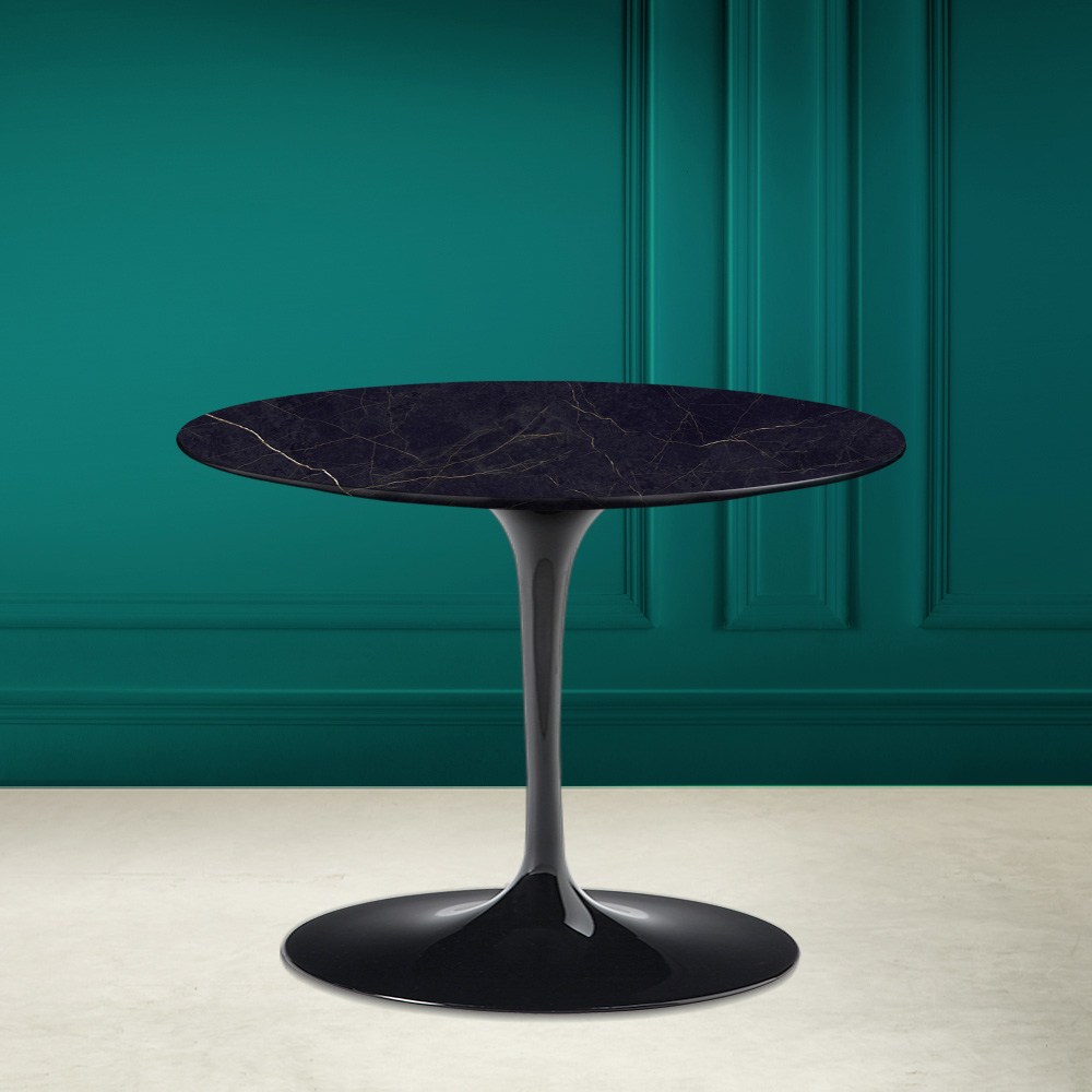 Masuta de cafea rotunda cu blat din ceramica noir laurent si baza din aluminiu lustruit Made in Italy