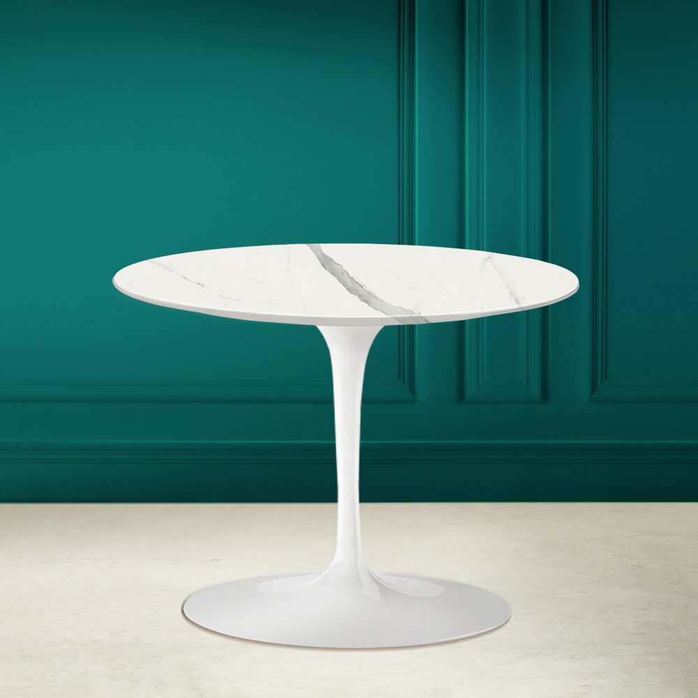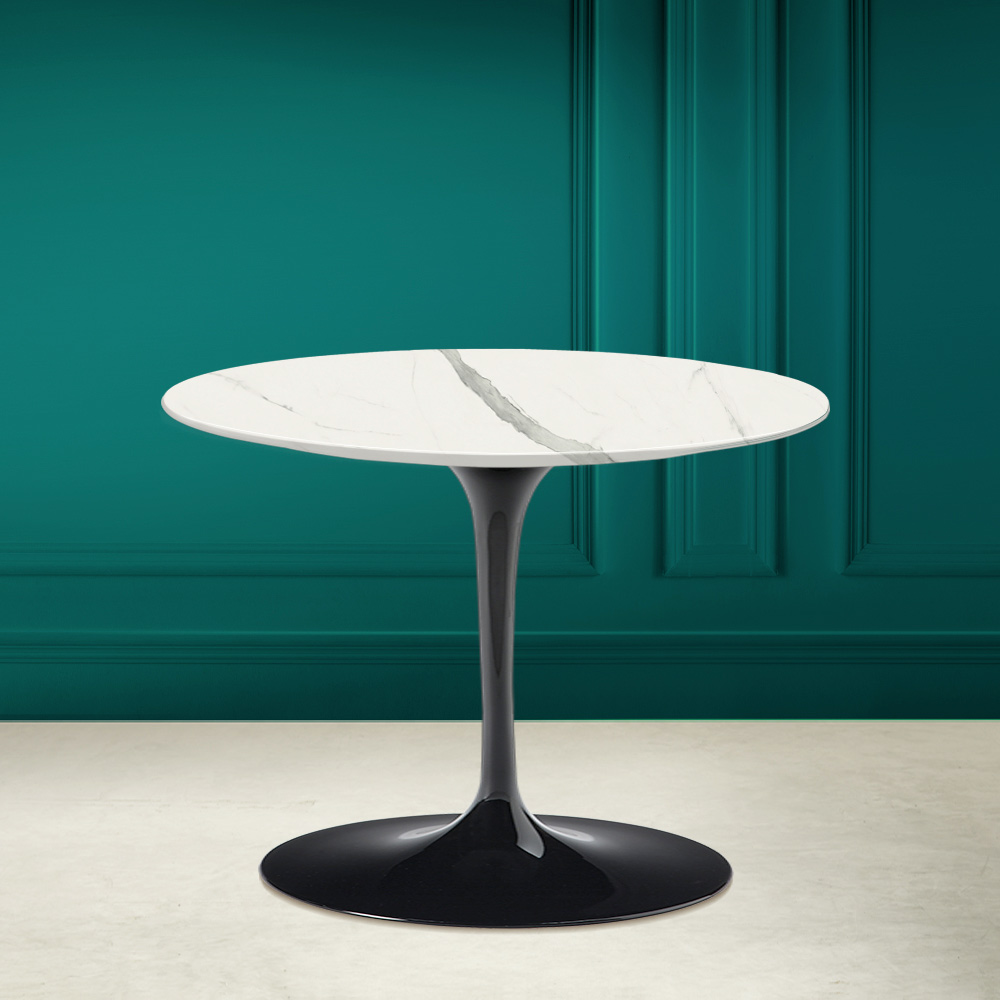 Masuta de cafea rotunda cu blat din ceramica statuara cu vena plina si baza din aluminiu lustruit Fabricat in Italia