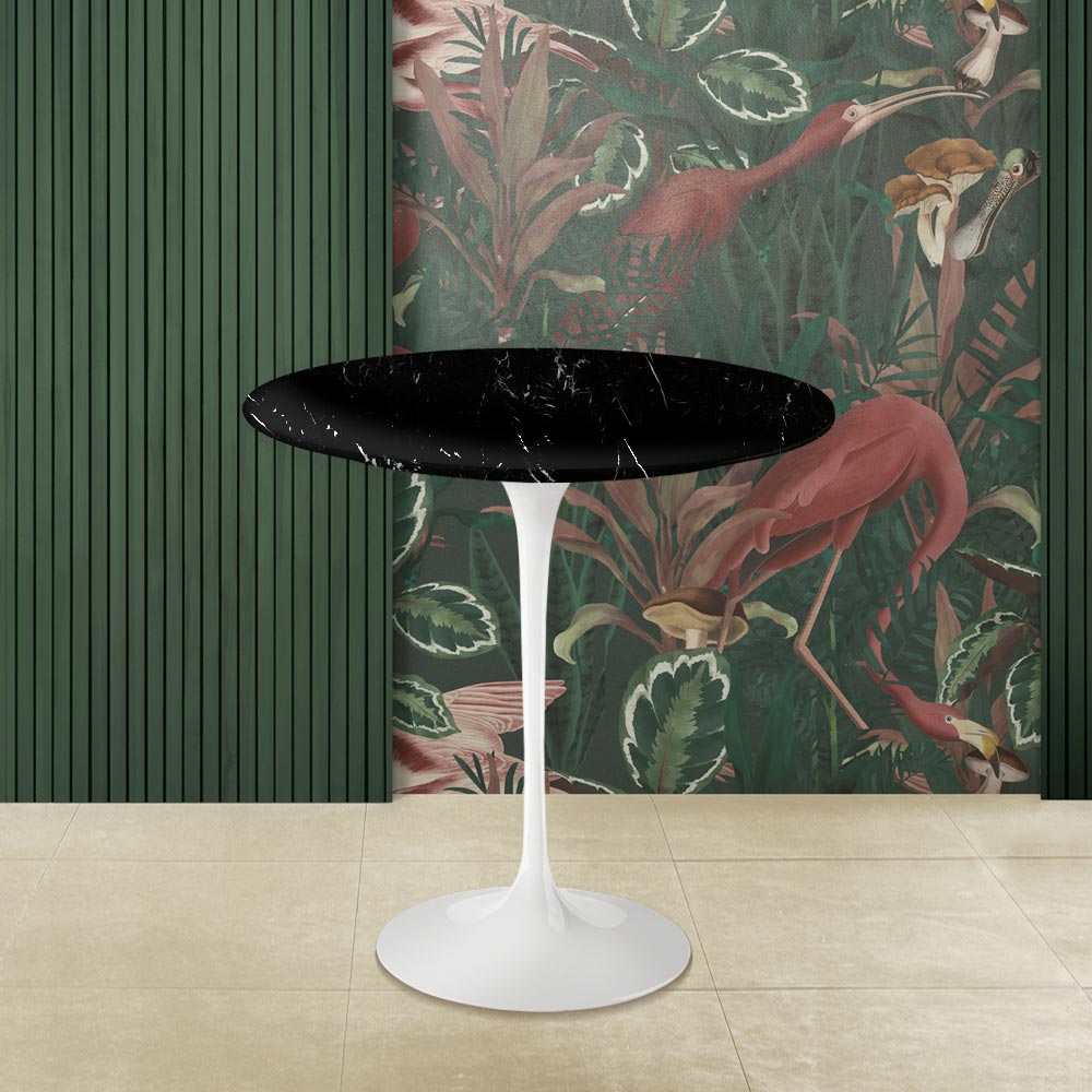 Masuta de cafea din marmura neagra marquinia si baza din aluminiu lustruit fabricata in Italia