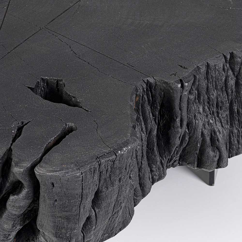 Particularitatea complementului este dată de blatul din lemn prețios de salcâm care constă dintr-o secțiune originală a portbagajului cu finisaj negru pe bază de vopsea poliuretanică.