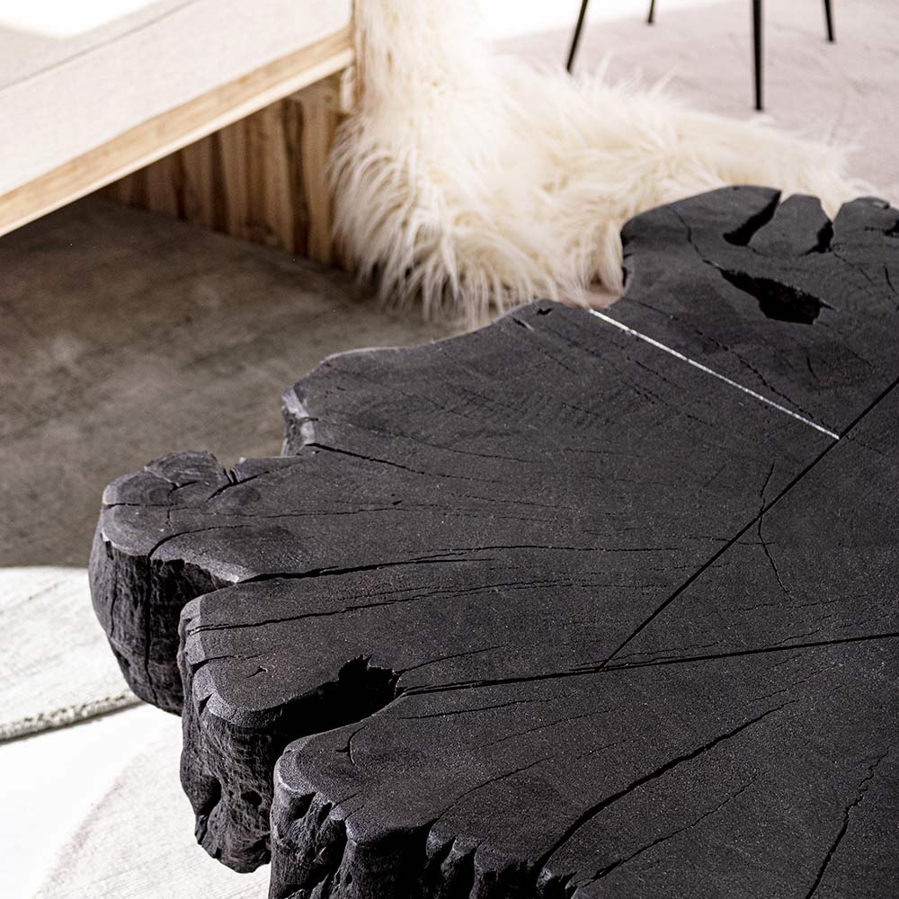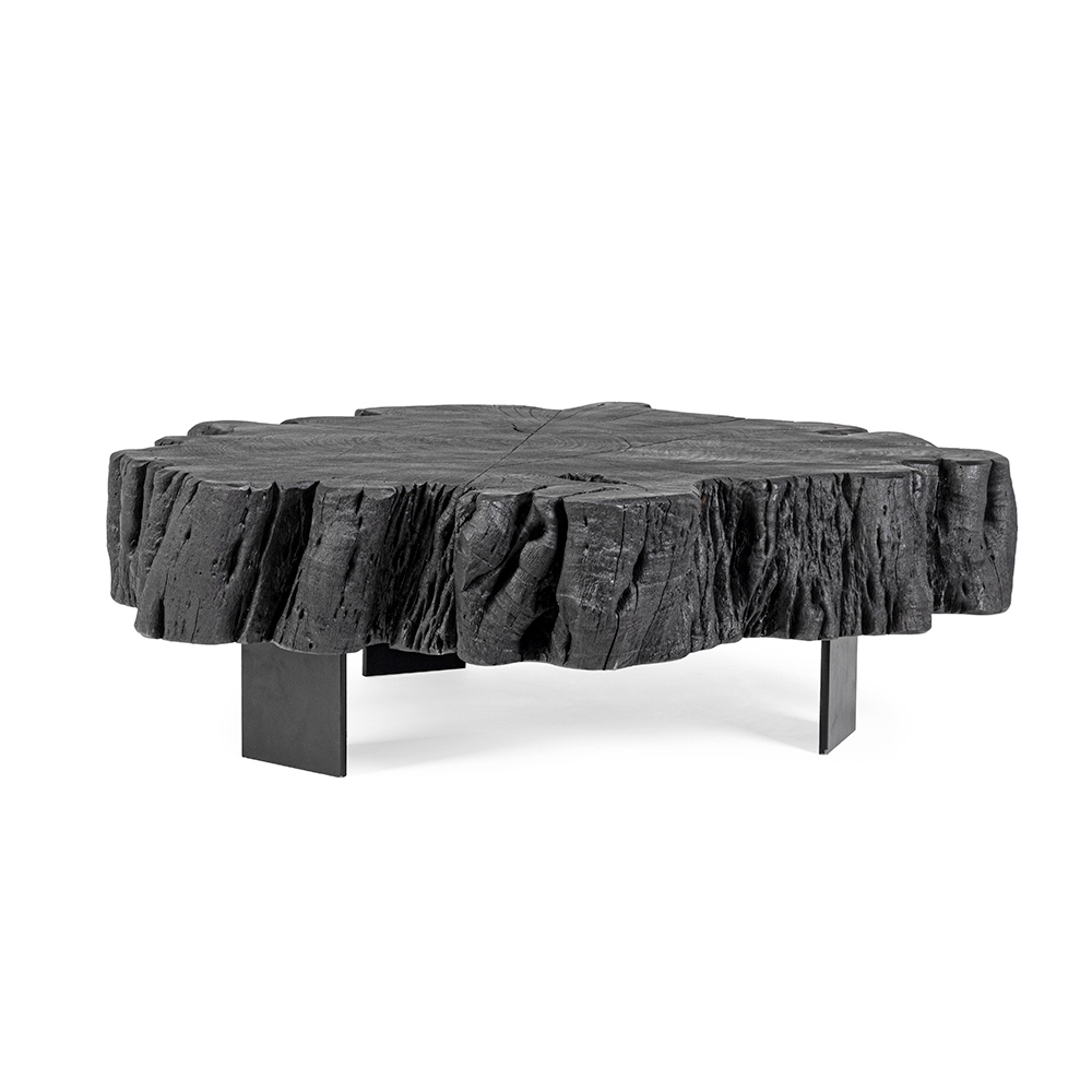 Masuta joasa pentru living din otel si portbagaj din lemn de salcam negru.