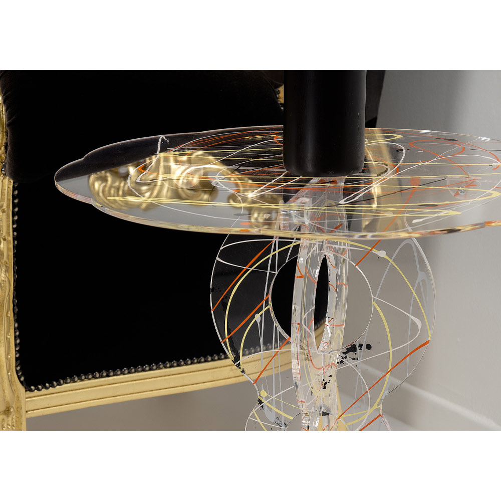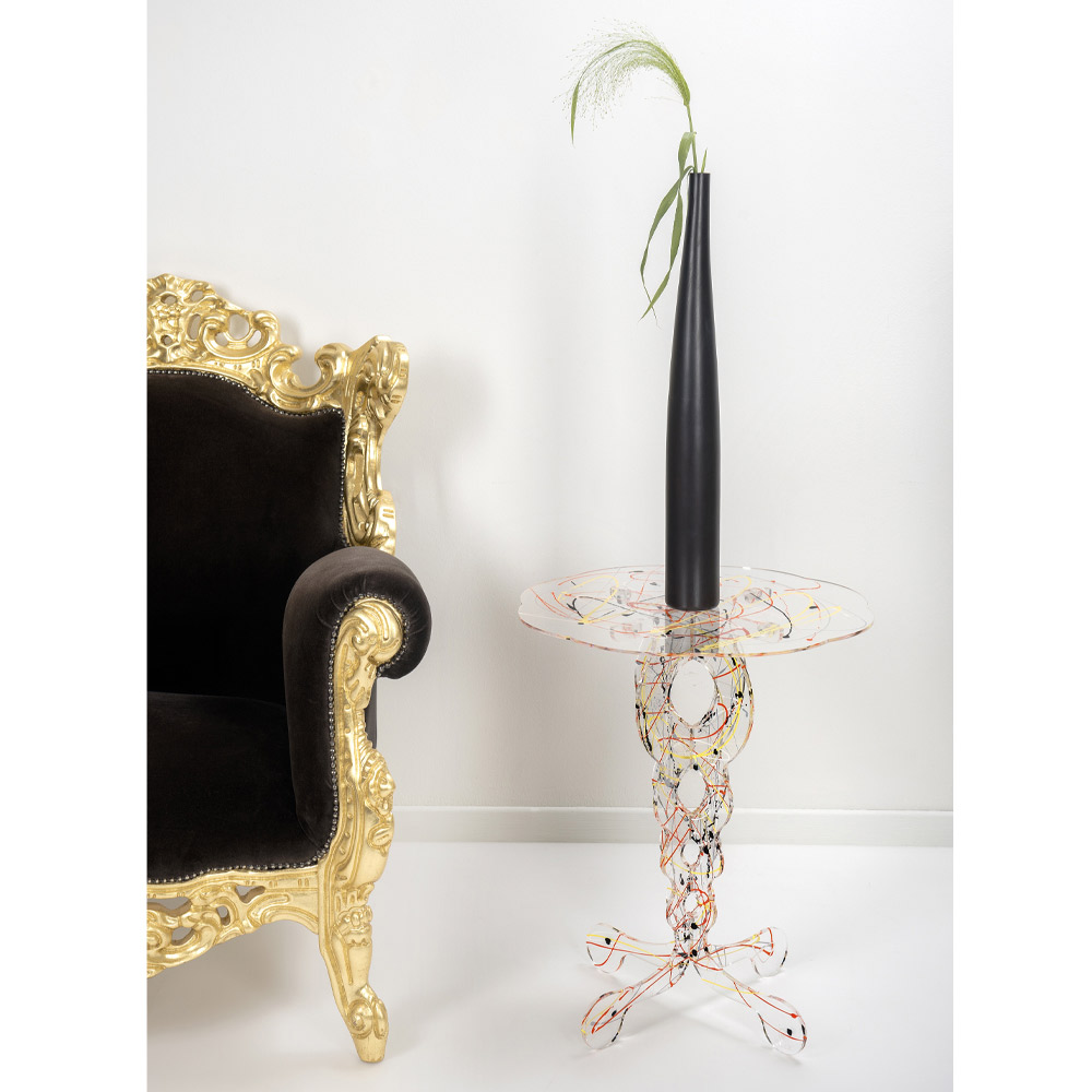 Masuta de cafea rotunda din plexiglas arabesc transparent Made in Italy.