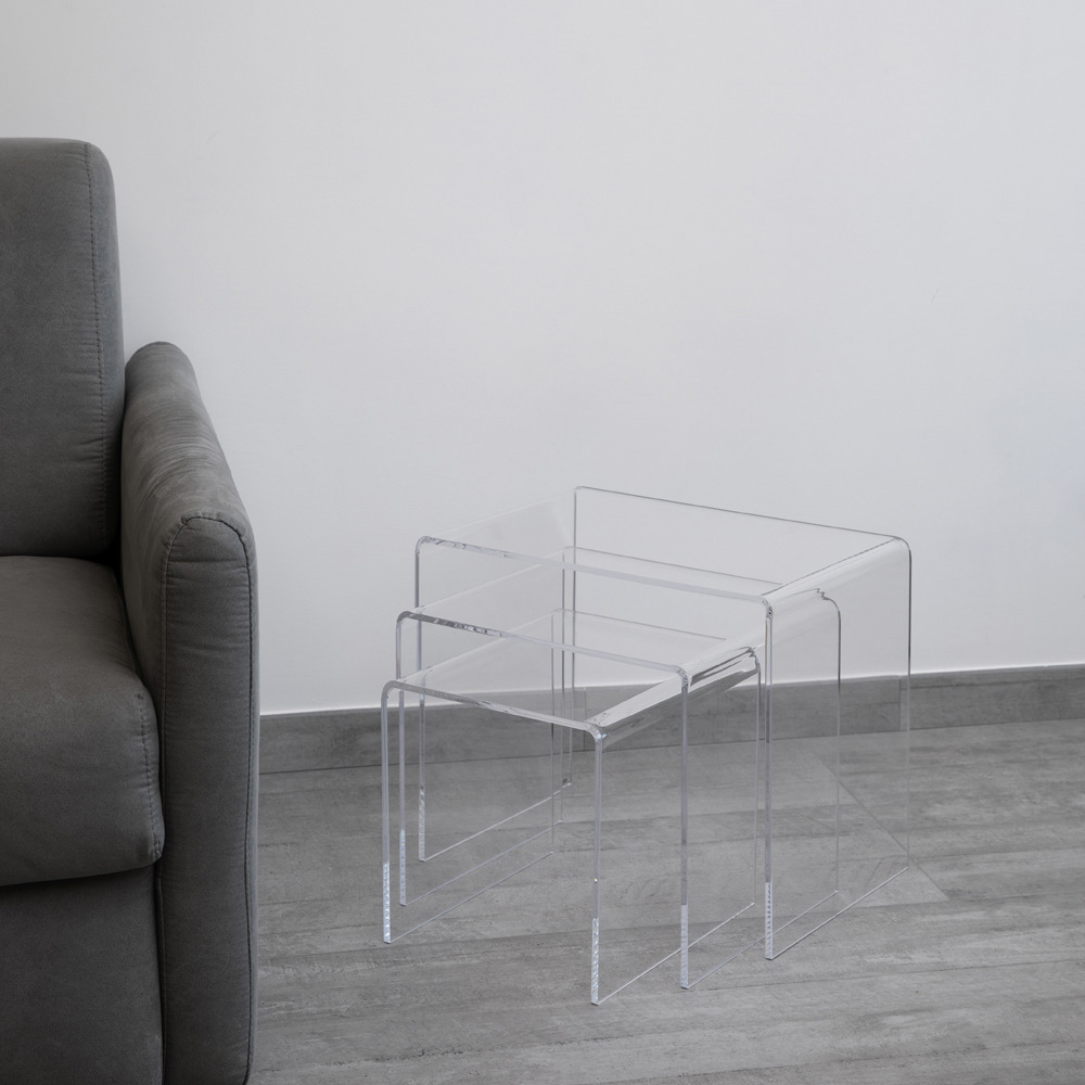 Masute de cafea triptic din cristal acrilic transparent, fabricate in Italia.