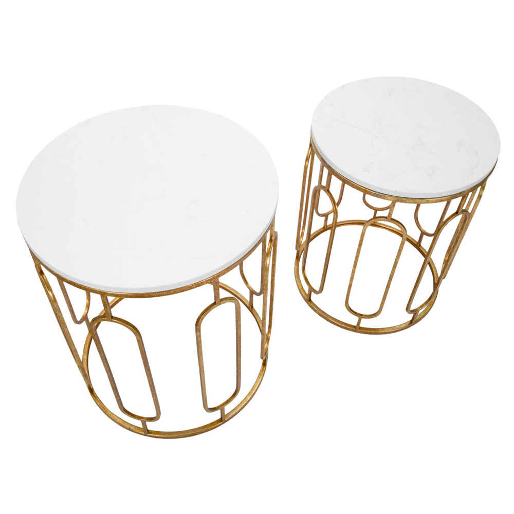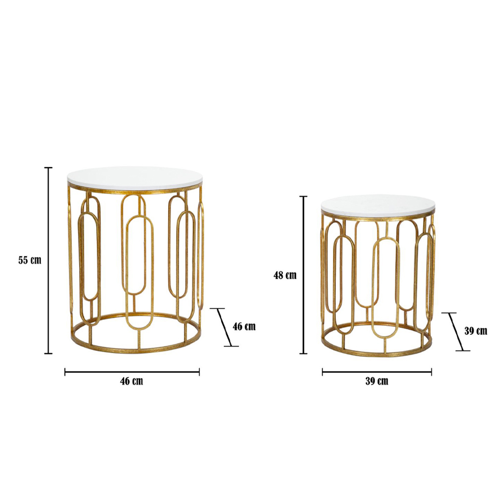 Pereche de măsuțe de cafea cu structură din fier finisat auriu și blat rotund din