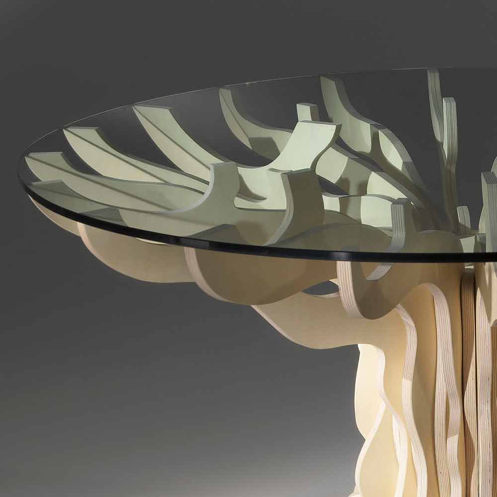 masă rotundă din lemn cu sticla călită de top Dalia, made in Italy Tabelul de design modern, realizate din placaj de mesteacan natural. în partea de sus clar sticla. Calitatea acestui produs este garantat de măiestrie desăvârșită a materialelor pure utilizate, selectate și modelate de meșterii italieni. Fiind un element manual în Italia, puteți solicita crearea și personalizate adaptate. Cere o estimare clienti@viadurini.it.