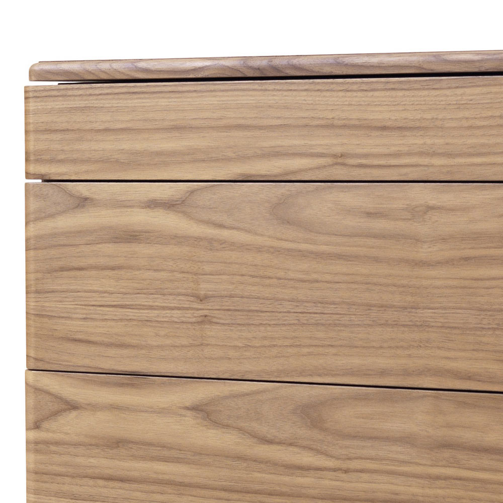 Sertare cu tapițerie din piele în față și echipate cu ghidaje glisante ascunse cu sistem de închidere silențios.