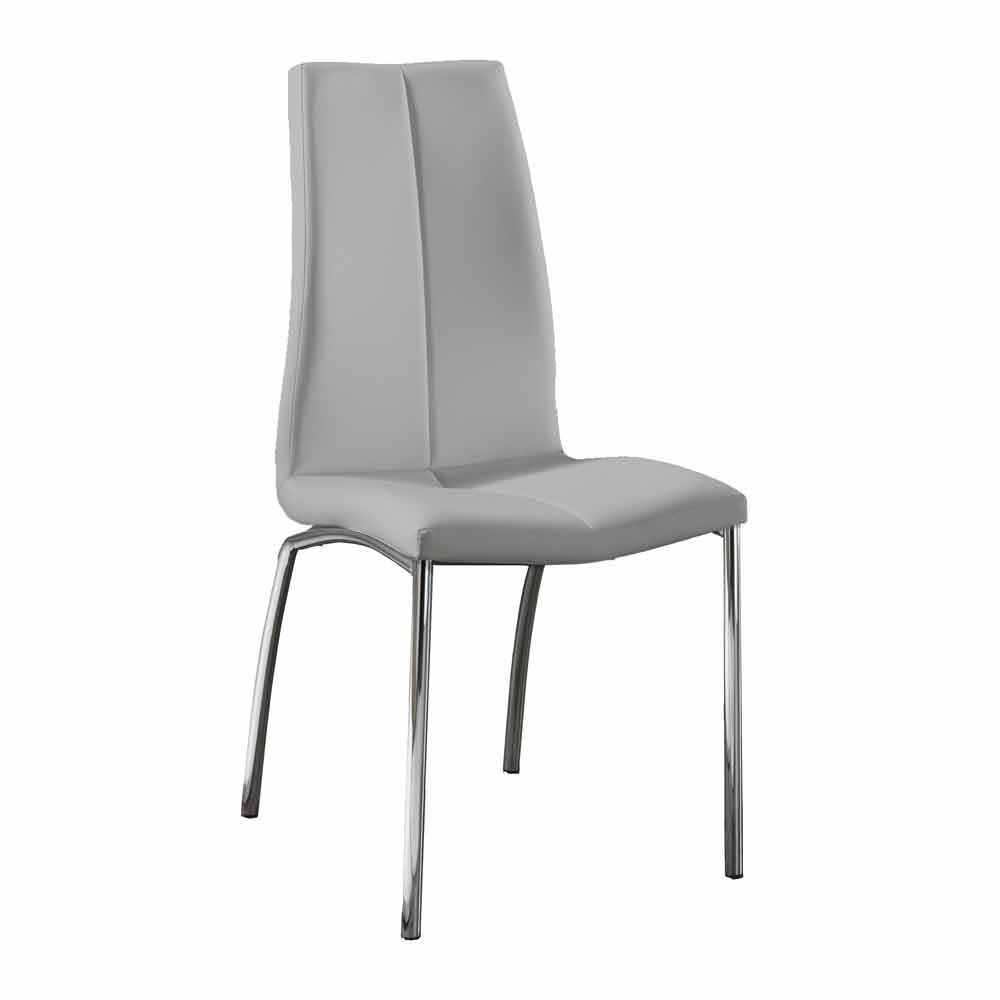 Scaune cu structură metalică cromată, scaun căptușit și spătar acoperit cu imitație de piele. Disponibil în diferite culori.