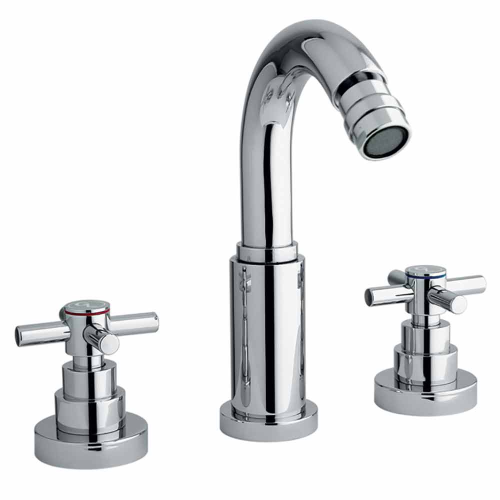 Baterie de bideu cu 3 orificii, finisată din alamă, cromată, fabricată în Italia.