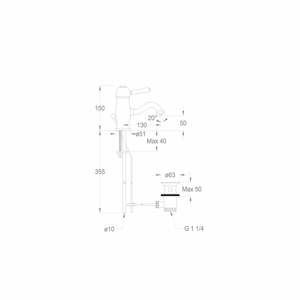 Baterie de lavoar cu design clasic de 150 mm înălțime și cu o distanță centrală de 130 mm, cu evacuare și deșeuri pop-up.